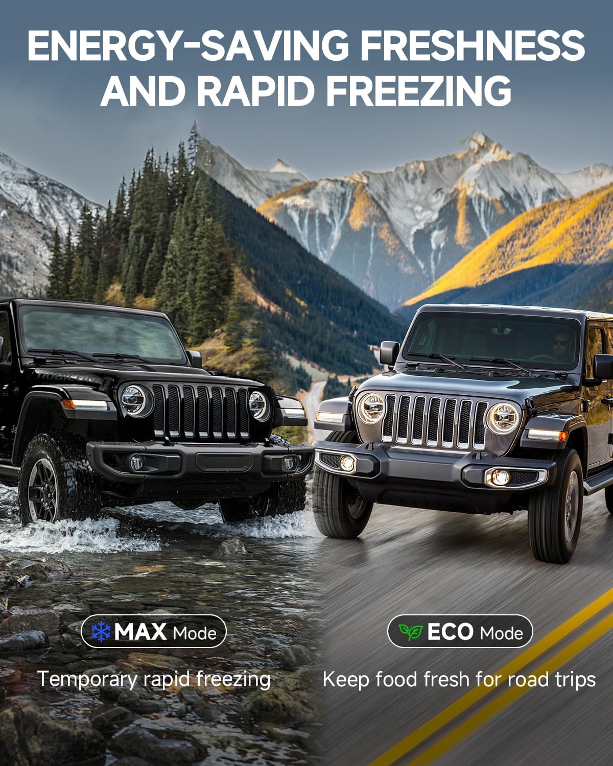 - 【Dual-Path Cooling】 BODEGA Car Fridge have a Switch-On-Fly Modes: MAX (15-min rapid chill) or ECO (40% extended runtime). Meet the needs of fast cooling and long-distance travel.The refrigerator connects to solar generators, standard home outlets, and vehicle power systems—keeping food cold anywhere, anytime.