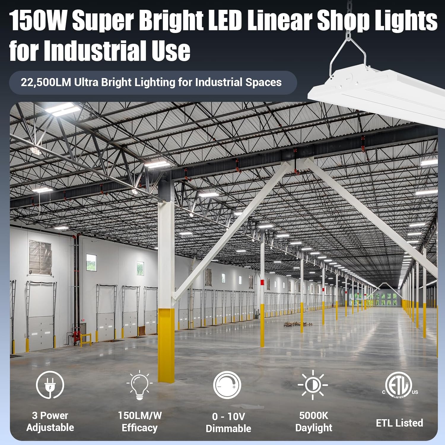 LED Linear Shop Lights 150W, 22500LM Led High Bay Lights 5000K Daylight 120-277V, 4-Pack Led Garage Light for Shop Workshop Store Commercial Supermarket Warehouse Basement Exhibition Room ETL