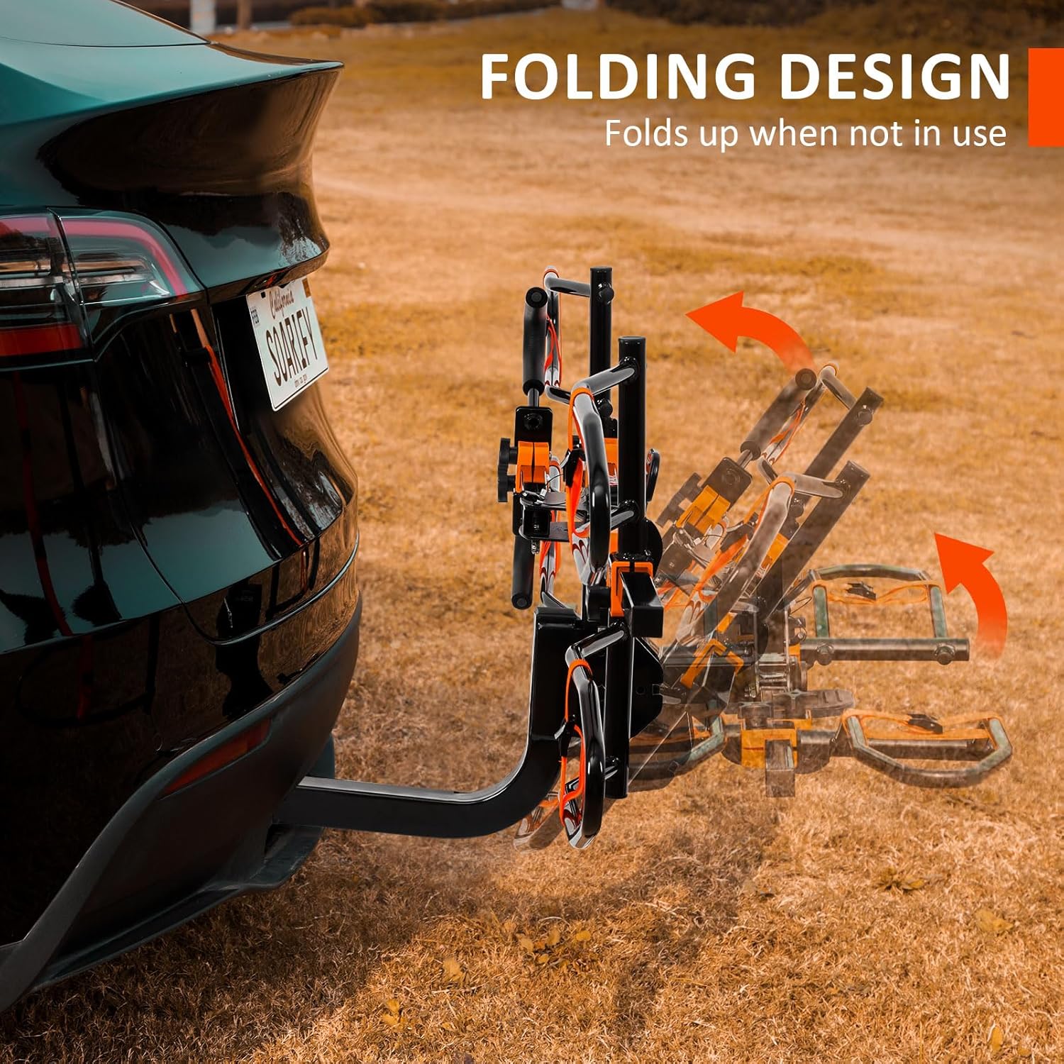 - 🚴【EASY ASSEMBLY & INSTALLATION】: Simple assembly with minimal tools required. The rack can be installed and removed quickly and effortlessly. Compatible with standard 2-inch hitch receivers, fitting most cars, SUVs, and trucks.