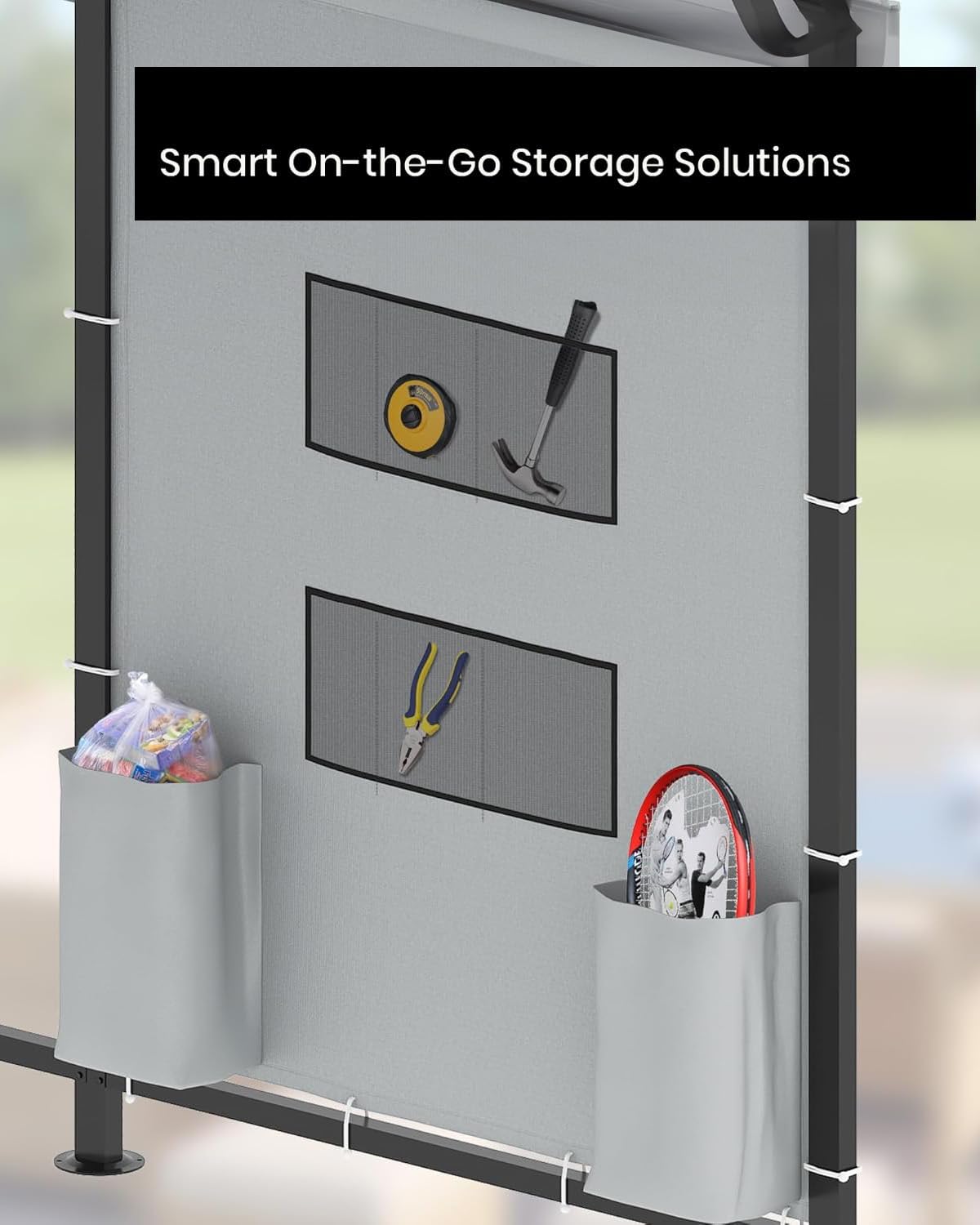 - Convenient Storage Pocket: Keep your tools handy with the included 2 PVC fabric side pockets. Easily attachable to any side of the metal carport frame with elastic buckles, it provides convenient extra storage right where you need it