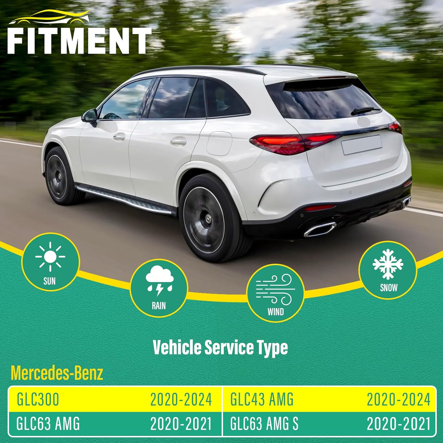 - [FITMENT2]: Replacement for 2020 2021 Mercedes-Benz GLC 63AMG & GLC 63AMG S 22inch + 22inch front with 12inch rear windshield wiper blades.