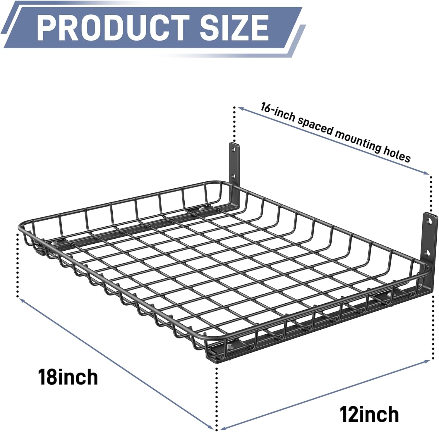 WALMANN Garage 12x18 inch Wall Shelf, Wall-Mounted Storage Shelves for Garage, Closet, Laundry Room, Heavy Duty Wall Shelving, Holds Up to 60 lbs(Pack of 2, Black)