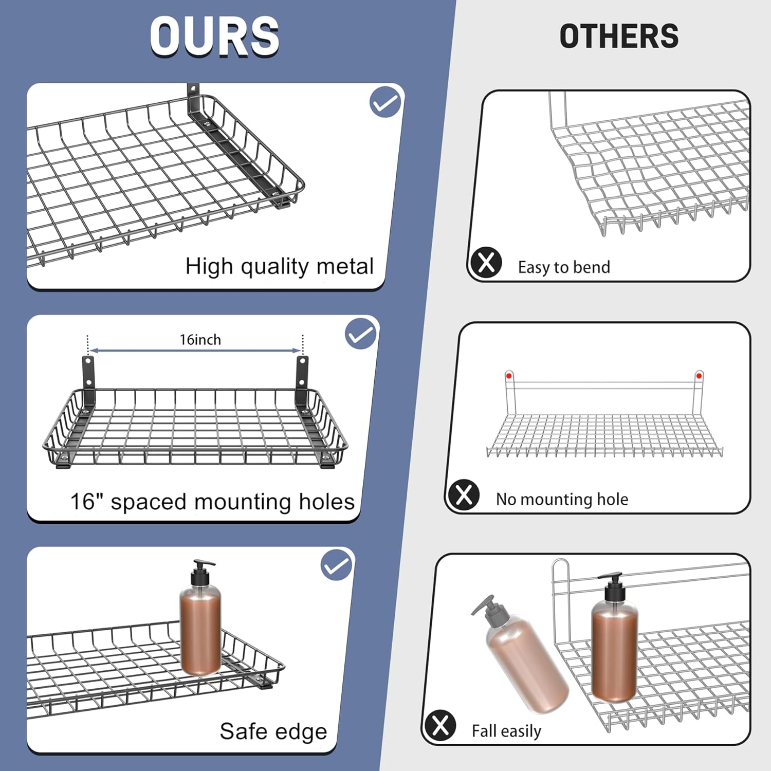 - Simple 16" Stud Mounting: Features 16-inch spaced holes for direct installation into wall studs. Comes with all hardware and step-by-step instructions—mount the shelves side by side or stacked to match your storage layout