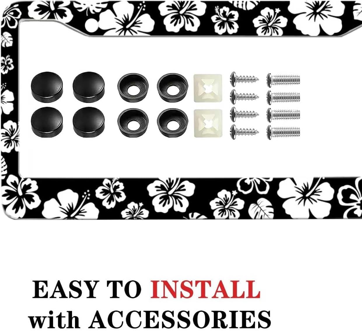 - PACKAGE CONTENTS: Set of 2 hibiscus license plate frames for women and mounting accessories, designed specifically for drivers to add style to their vehicles.Little change on the plate, big joy on the road!