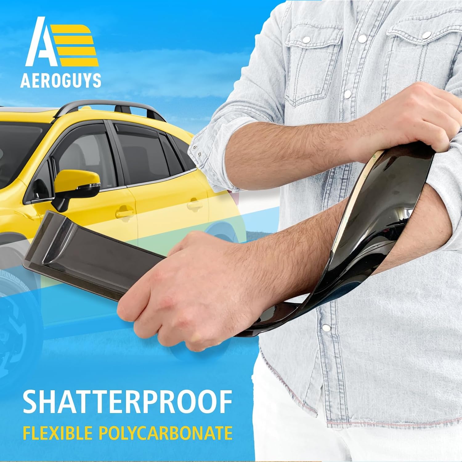 - Incredibly Durable AEROGUYS Auto Window Deflectors β They are made with strong and tough polycarbonate which is clear and scratch-resistant. They also provide UV protection making your ride more comfortable under all weather conditions.