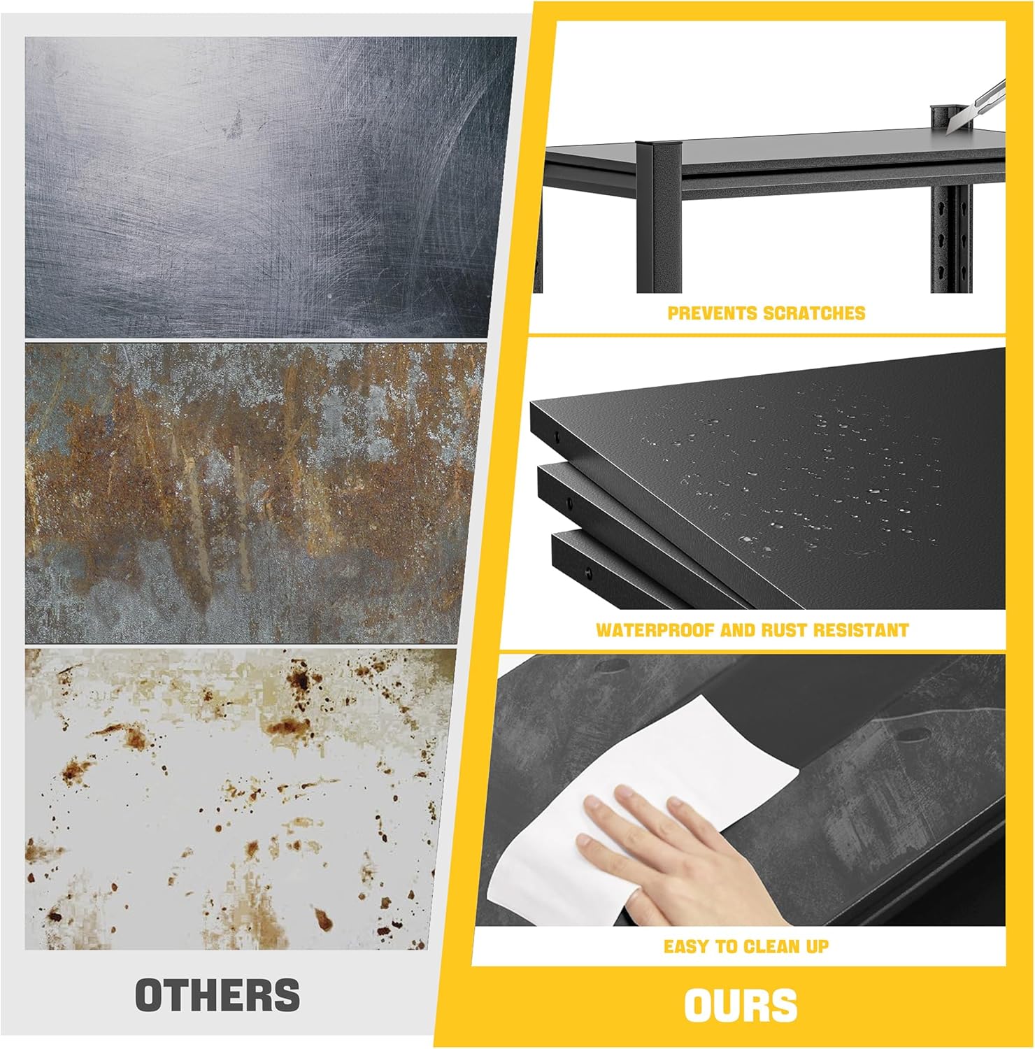 - 👉 EXTRA LARGE SIZE, SPACIOUS SPACE: The extra wide design of this garage shelf provides plenty of storage space, perfect for your storage needs whether it's in your garage, warehouse or basement.