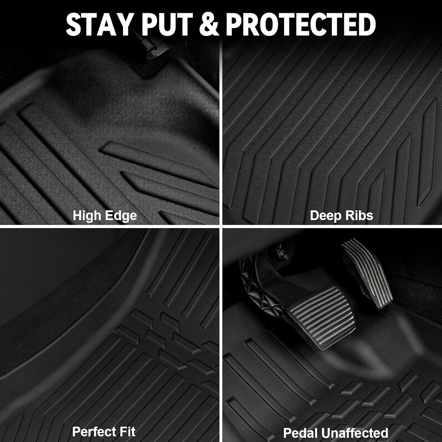 - Non-Slip Defense: Engineered raised edge trap spills, mud, snow and debris, while reinforced textured patterns reduce foot slippage. Custom clips in car floor mats lock onto original car anchors for zero movement