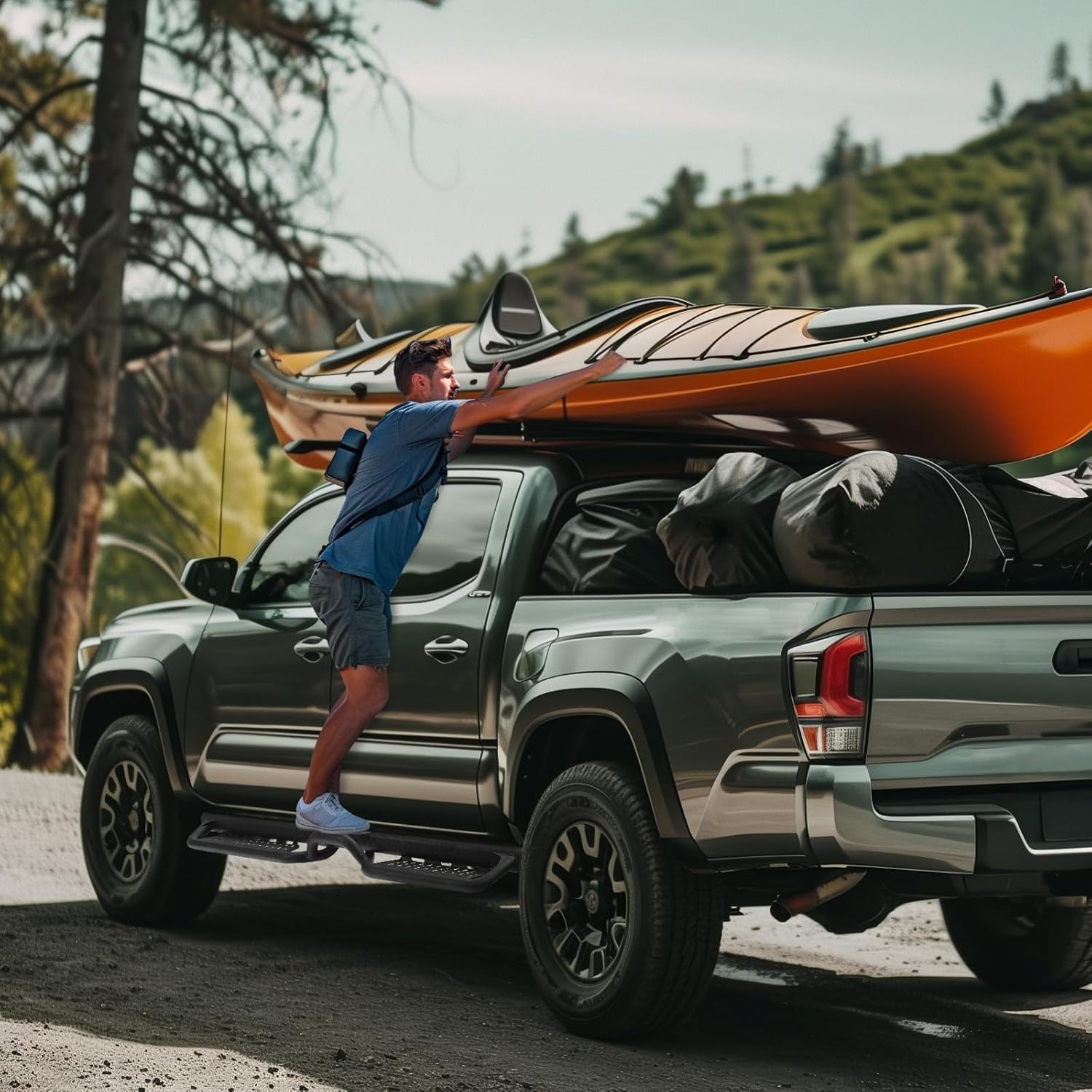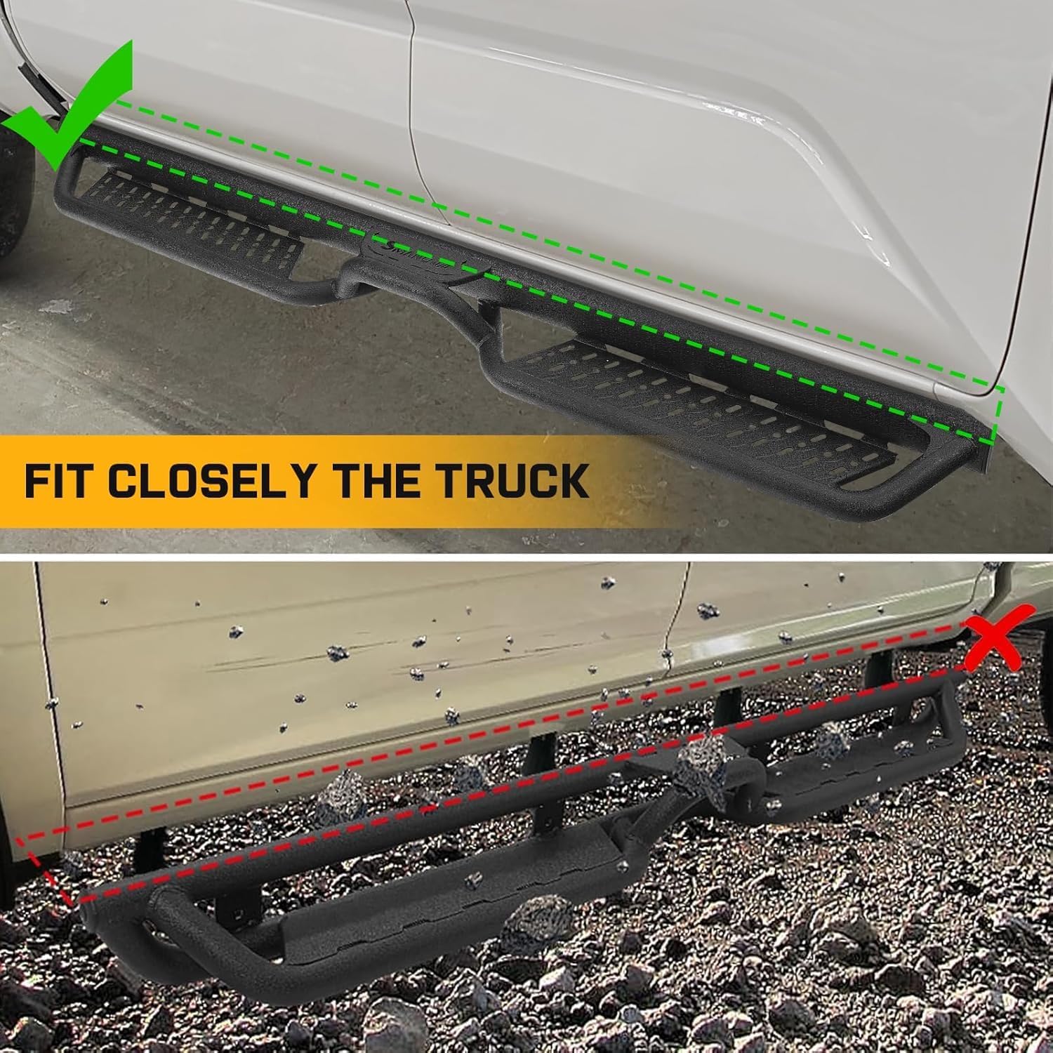 - NON-SLIP DESIGN SIDE STEPS: Our truck side steps feature a unique cut-out and raised design to provide a true anti-slip surface that goes beyond the usual flat cut-out design. This innovative design ensures firm footing and provides extra security when entering and exiting your truck, especially in wet or slippery conditions.