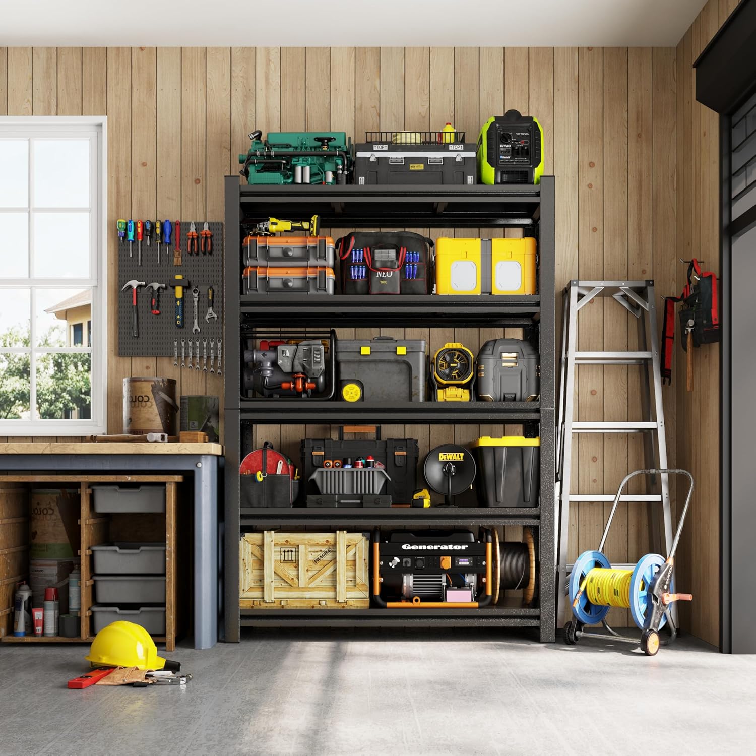 - 【UPGRADED SAFETY PROTECTION】Each shelf of our garage shelving is equipped with specially designed fall prevention safety rails, which effectively prevents items from accidentally falling and greatly reduces the chance of items tipping over and rolling to the ground in busy places such as garages and workshops where items are prone to collisions or bumps. Meanwhile, garage shelving adopts upgraded double-layer columns, which significantly improves stability and load-bearing capacity.