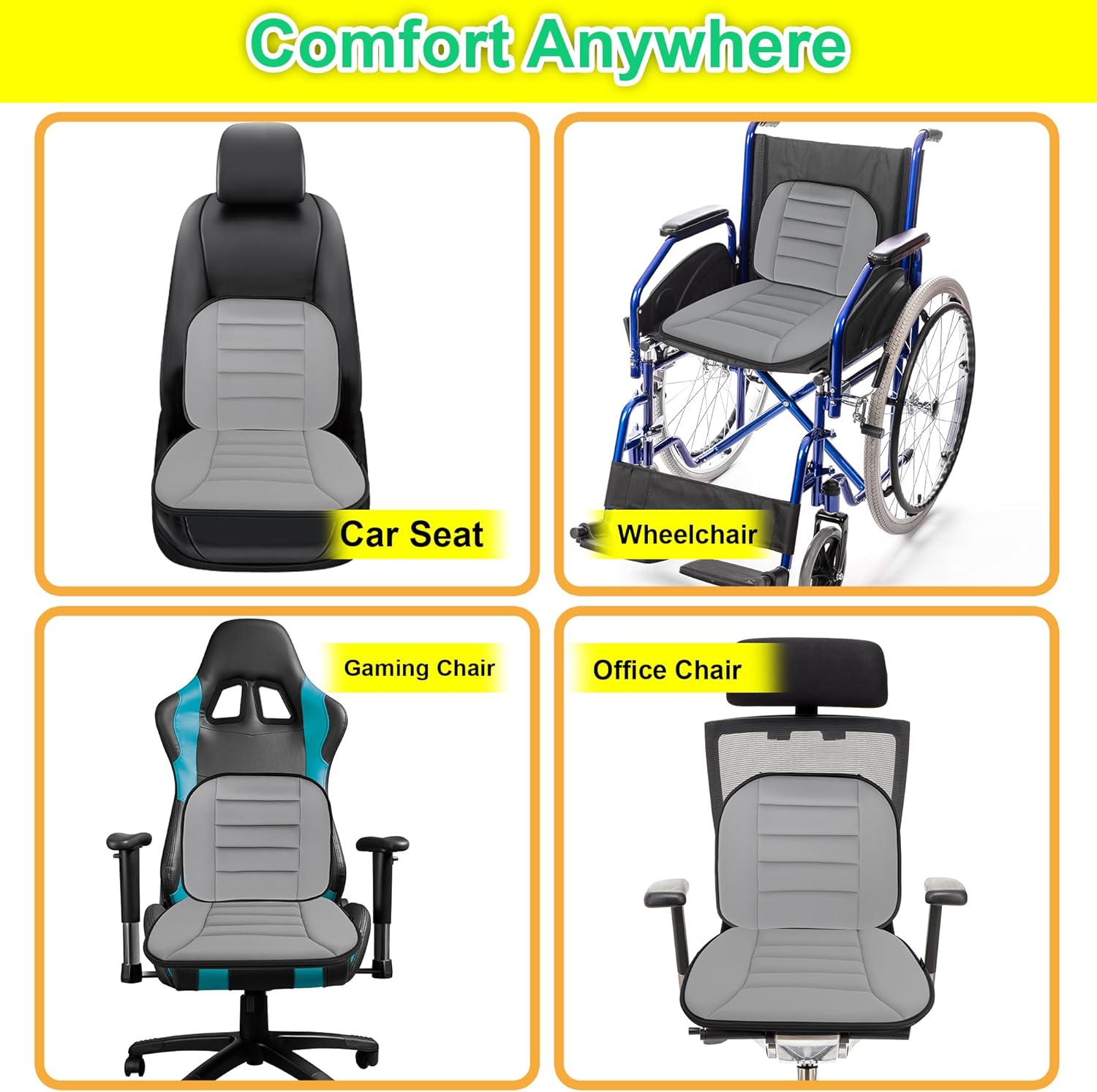 - PAIN RELIEF AND POSTURE SUPPORT - The chair seat cushion and lumbar support pillow are expertly crafted to alleviate discomfort in the lower back, lumbar area, tailbone, and sciatic nerve, promoting healthier and more comfortable sitting posture. Designed for versatility, it fit seamlessly into variety of car, office chairs, wheelchair and gaming chair ensuring optimal comfort wherever you sit