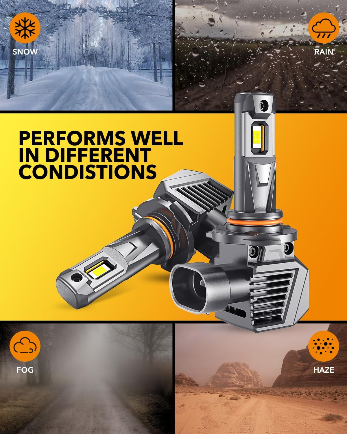 - Longer Lifespan: Built with a full aviation aluminum body and a high-speed 12000RPM silent cooling fan, these bulbs are engineered for superior heat dissipation. With an IP67 waterproof rating, they are suitable for use in any weather, ensuring durability and longevity