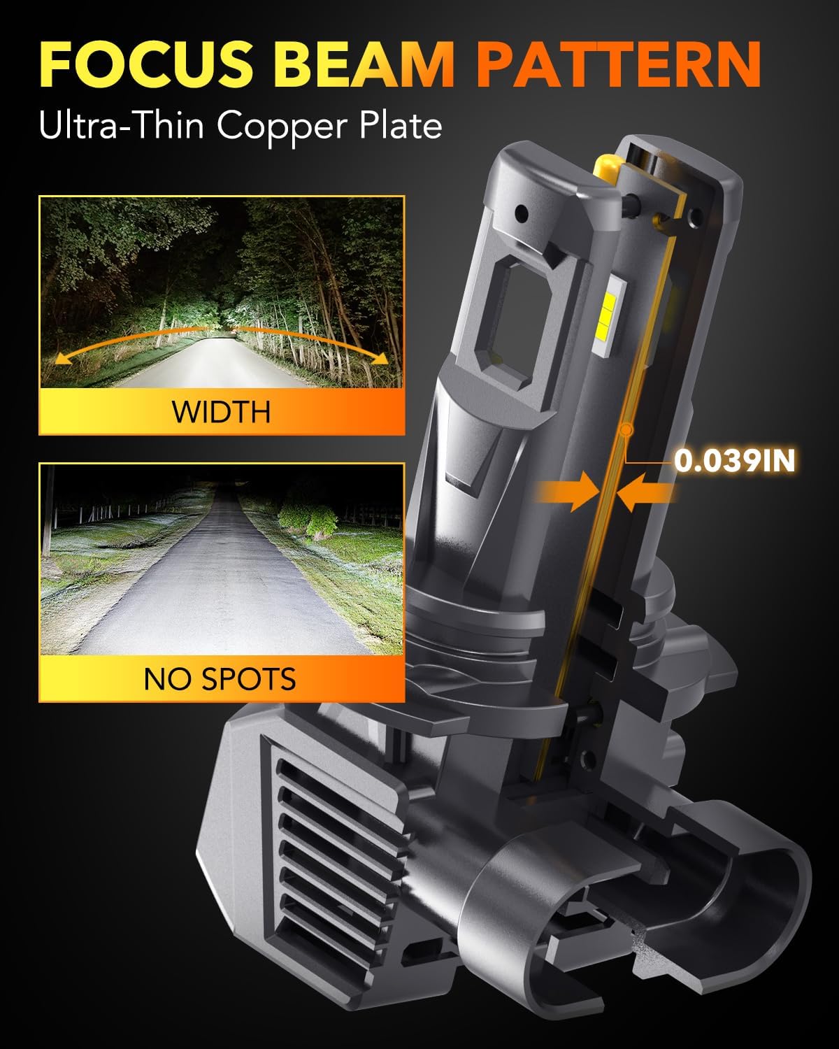 - Perfect Beam Pattern: Designed with a 1mm ultra-thin copper plate, the OXILAM 9005 9006 bulbs ensure a precise match to halogen light distribution. This innovative design guarantees 360° illumination without dark spots, allowing for better visibility during nighttime and unfavorable weather conditions