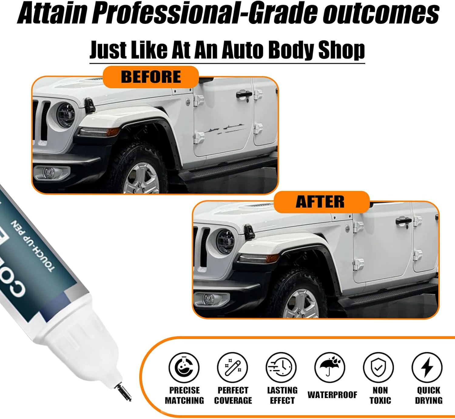 - ăExcellent Color MatchăThe car touch-up paint is specially designed for the Jeep vehicles and can be well-matched with the Jeep. It is meticulously crafted to minimize color differences and make scratches invisible, Our touch up paint compatible with Jeep features an exact color match for any Jeep model, ensuring a seamless and professional finish. No more worrying about mismatched shades
