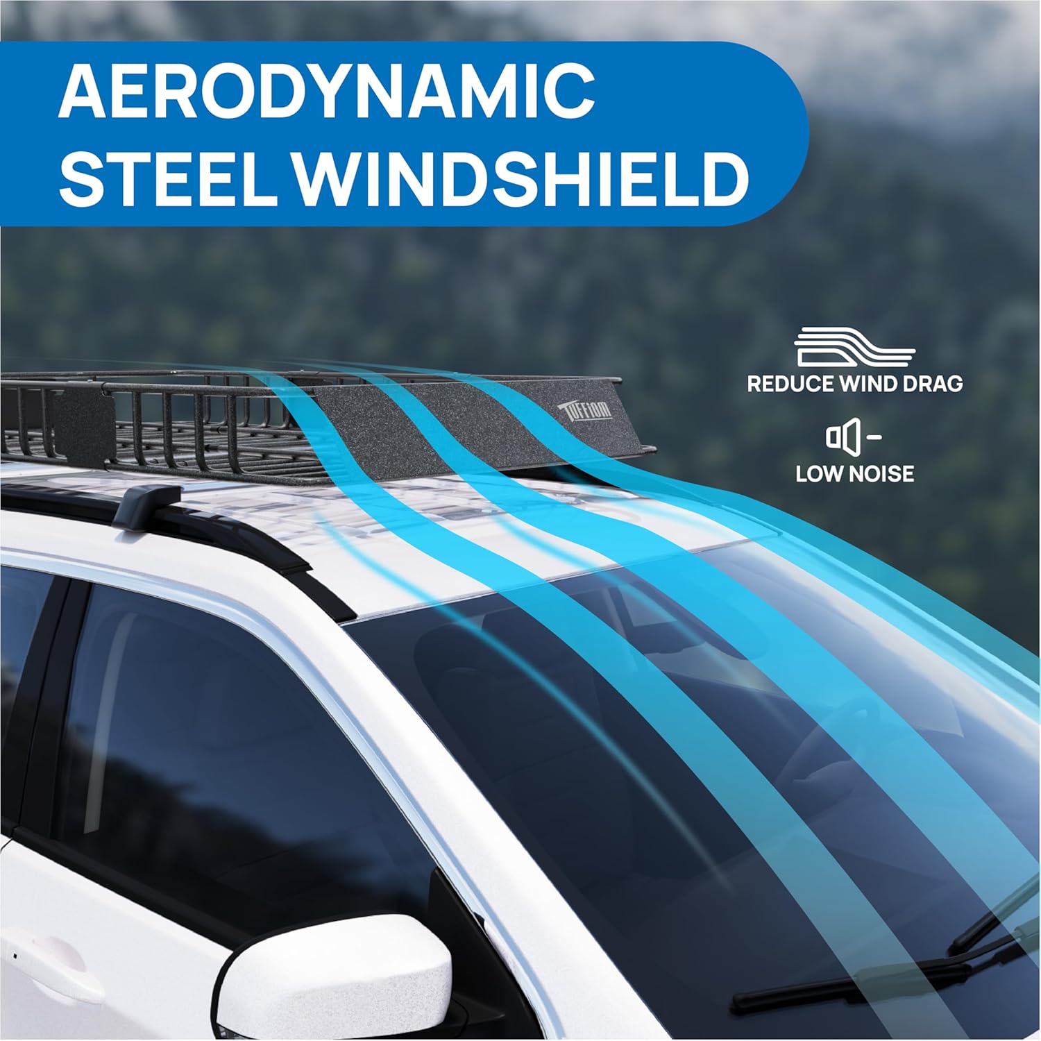- 【Enhanced Security】Features a wind shield forward protect cargo from wind damage and reducing wind resistance. Sturdy bottom that can keep your items secure during traveling