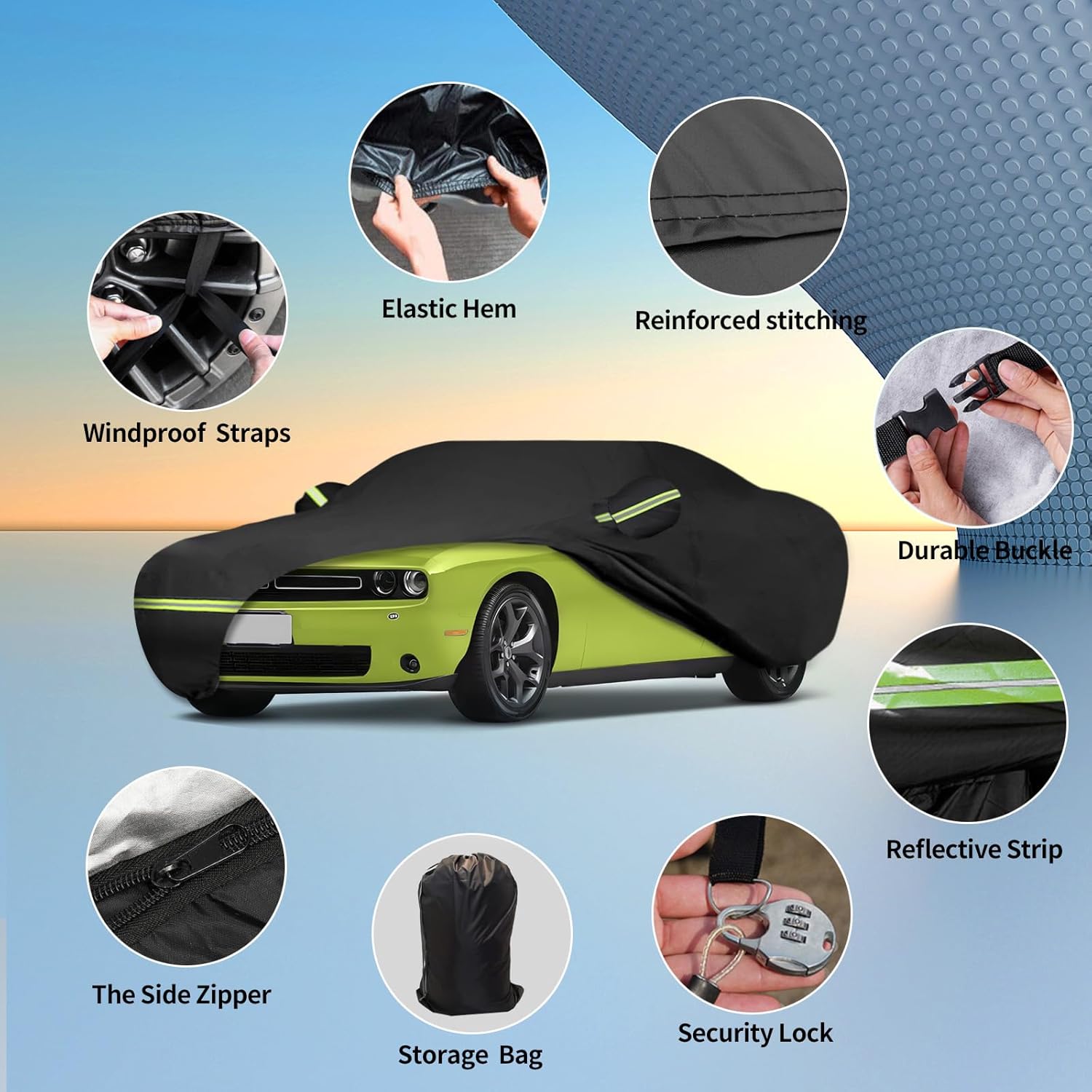 Waterproof Car Covers for 2008-2025 Dodge Challenger(Black) Custom Heavy Duty Waterproof All Weather Protection Outdoor
