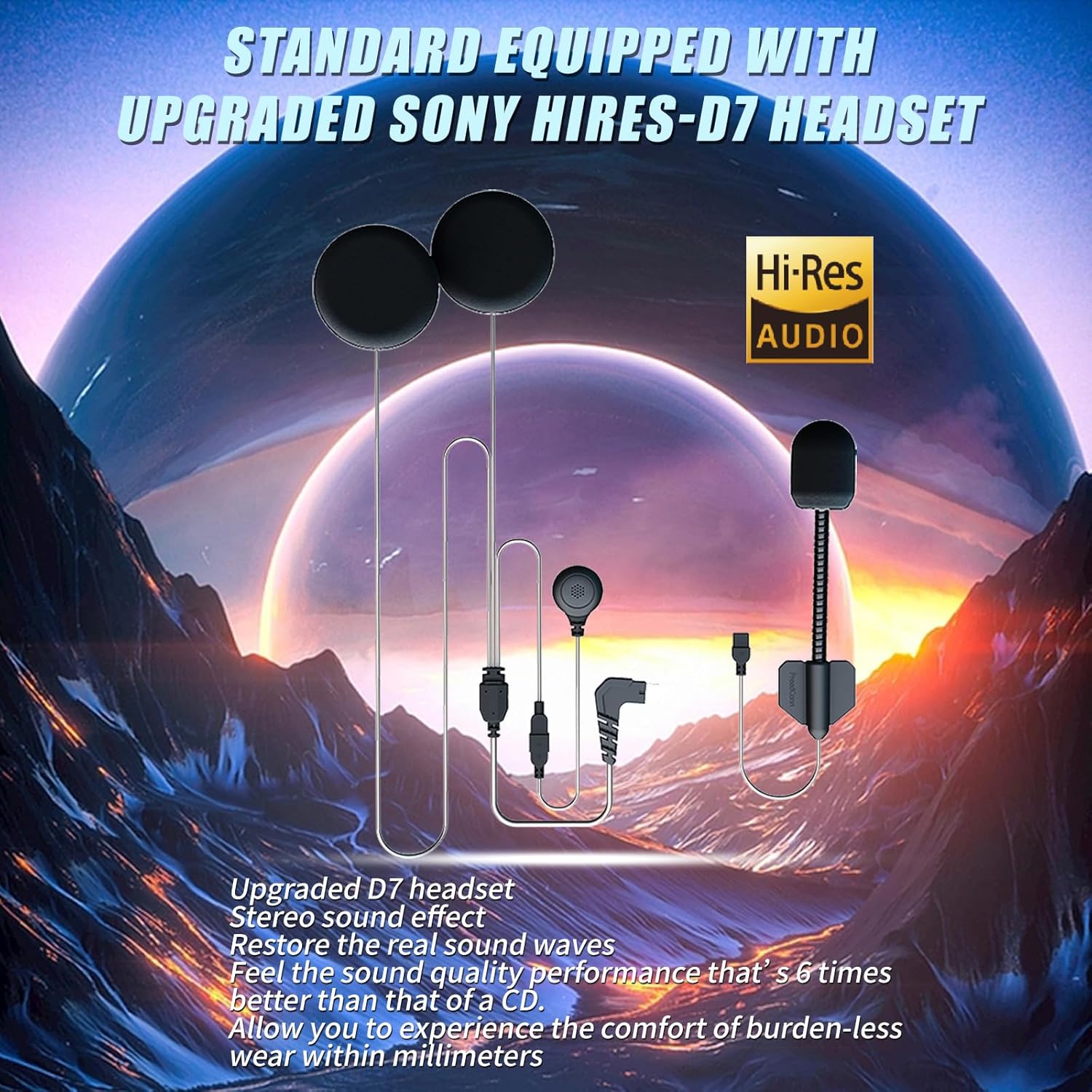 - 【2K Recording & Hi-Fi Audio】R3 PRO motorcycle helmet bluetooth headset pairs a 2K camera with Hi-Res Certified earphones, delivering studio-grade sound for both music streaming and intercom. Featuring a 140° adjustable lens for multi-angle capture, it records up to 6 hours of footage while delivering 24-bit/96kHz audio clarity