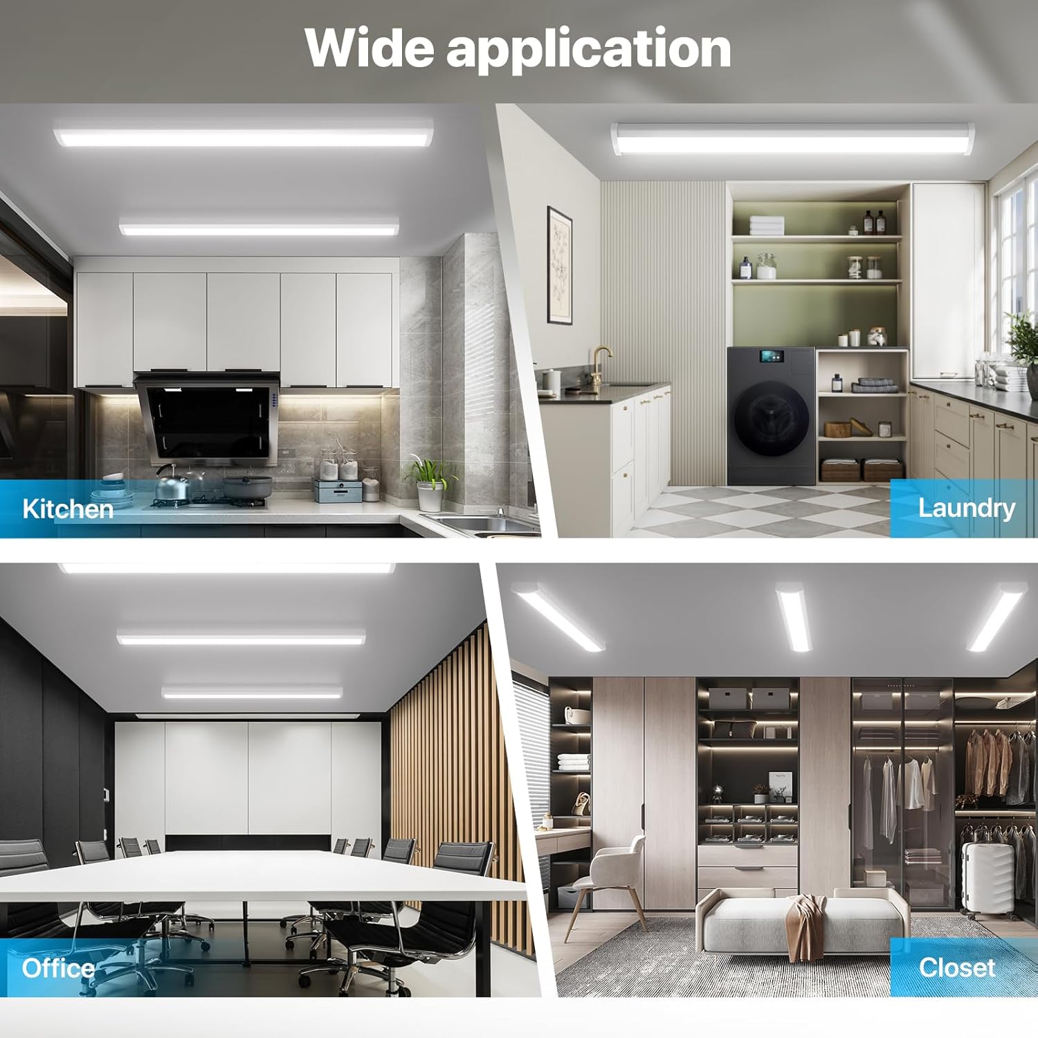 - Adjustable Power Options: 40W/50W/60W. One fixture, 3 lighting levels! Hyperlite 4FT wraparound LED light fixture features adjustable wattage, allowing you to choose the perfect brightness for different spaces and tasks. Whether you need soft lighting for daily use or maximum brightness for detailed work, the led ceiling office light gives you the flexibility you need—saving you time and guesswork.