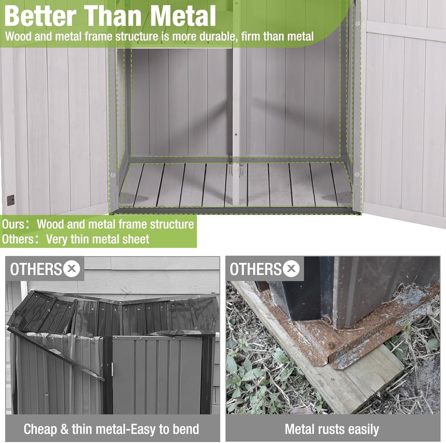 - Sturdy Metal Frame: Sheds outdoor storage with the combination of a metal frame and quality wood ensures strong load-bearing capacity and durability