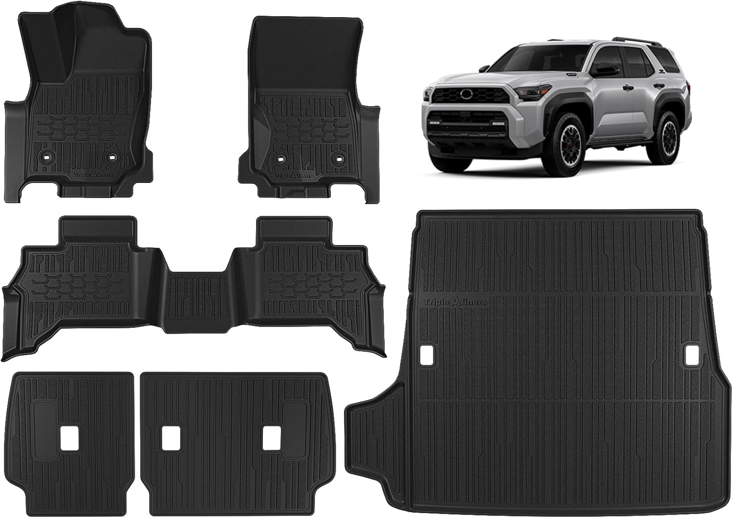 TripleAliners Floor Mats & Trunk Mat & Rear Seatback Cover All Weather TPE Liners Fit for Toyota 2025 4Runner Accessories Custom Fit TPE Heavy-Duty (Only for 5 Seats) - Not for Hybrid Model