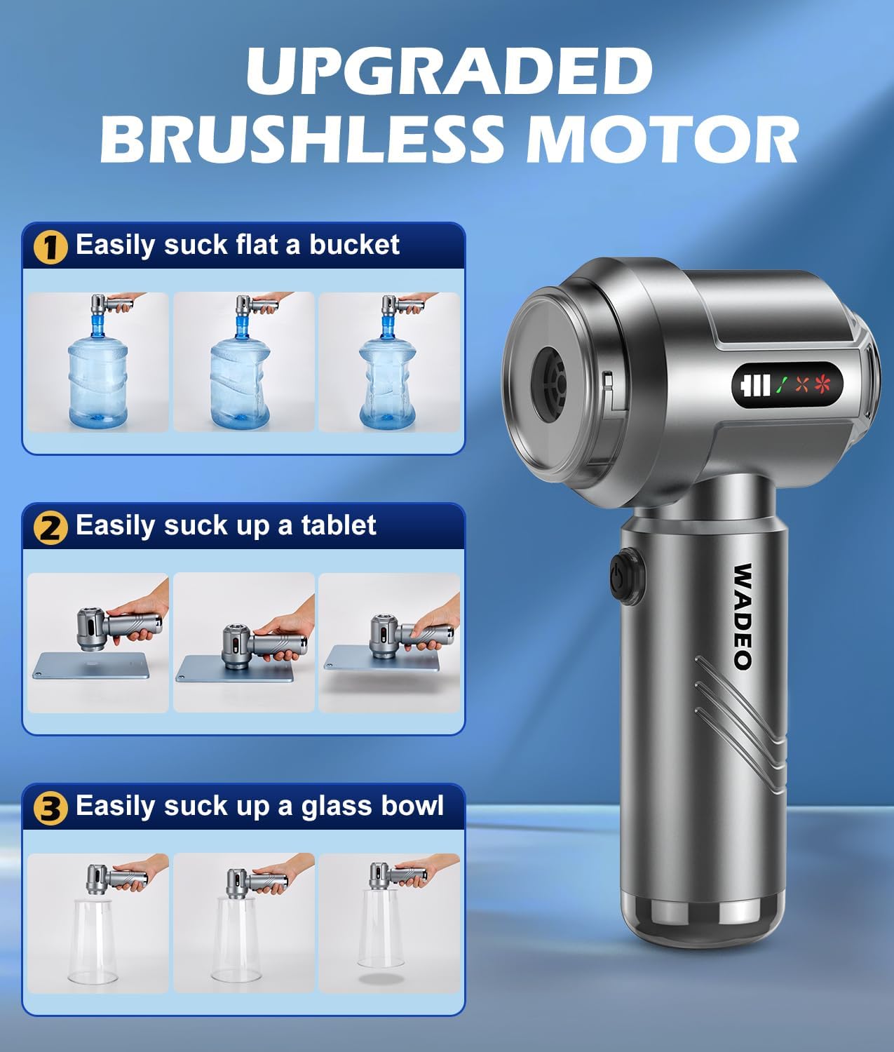WADEO Car Vacuum Portable Cordless 18000PA, 4-in-1 Handheld Vacuum Cleaner and Air Duster with LED Display & Multi-Nozzles, Mini Hand Held Vacuum Rechargeable for Home, Car, Office, Pet Hair