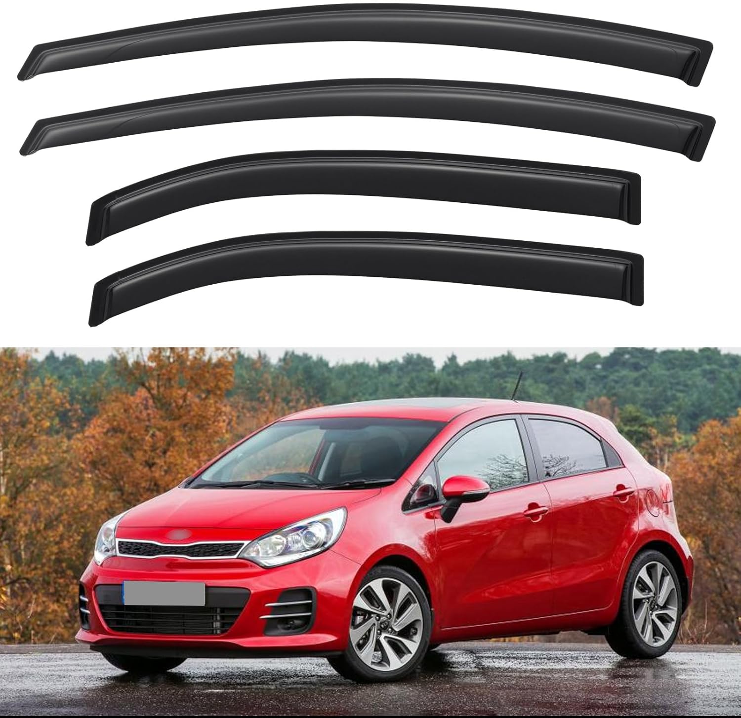 - ăPerfect FităYQAUTEC 4Pcs Window Visors Rain Guards Shield fit for 2012 2013 2014 2015 2016 2017 Kia Rio Hatchback, Side Window Vent Wind Deflectors Visors Shades for 12 13 14 15 16 17 Kia Rio Hatchback. (Not for Sedan!!!)