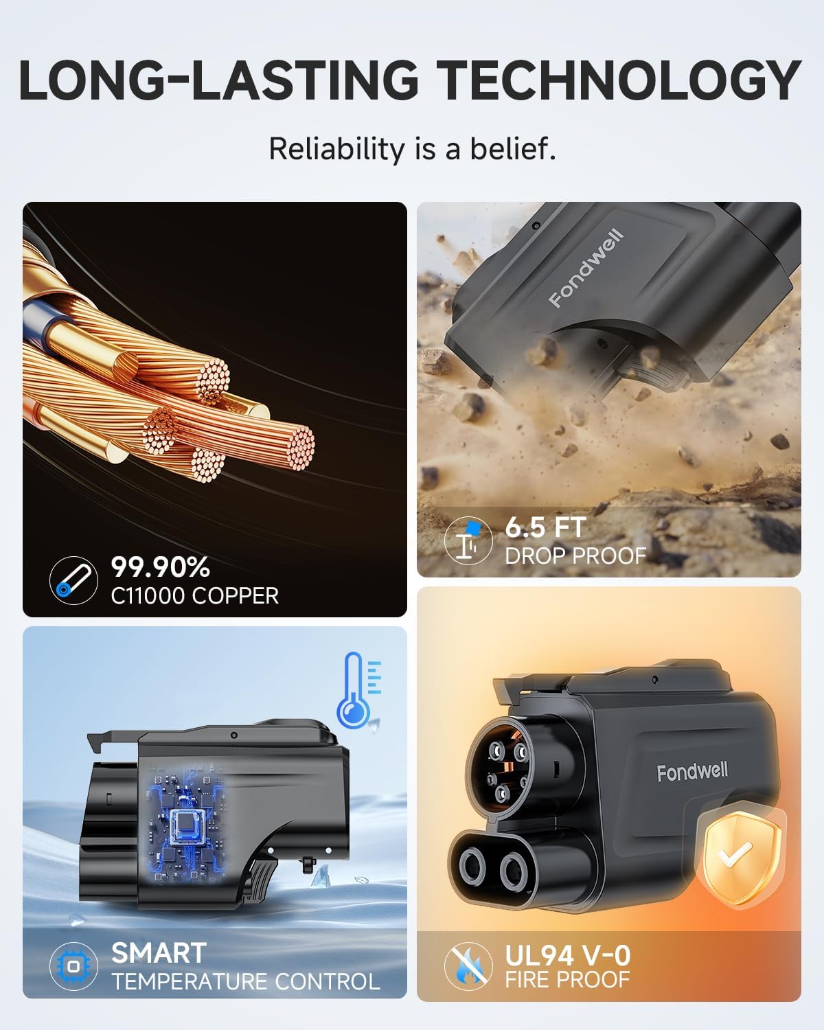- Plug, Charge & Go: Its precision-engineered connectors enable charging with smooth insertion and removal - recharge from 10% to 80% in 15 minutes, the Fondwell T4 Ultra NACS Charger Adapter is ideal for road trips and daily commutes