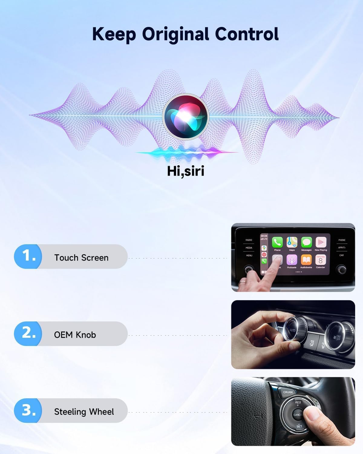 - Upgrade to Wireless CarPlay – Convert your factory-wired CarPlay into wireless in just one setup. Enjoy hands-free navigation, music streaming, phone calls, and Siri voice commands without plugging in your phone. After initial pairing, the adapter auto-reconnects every time you start the car