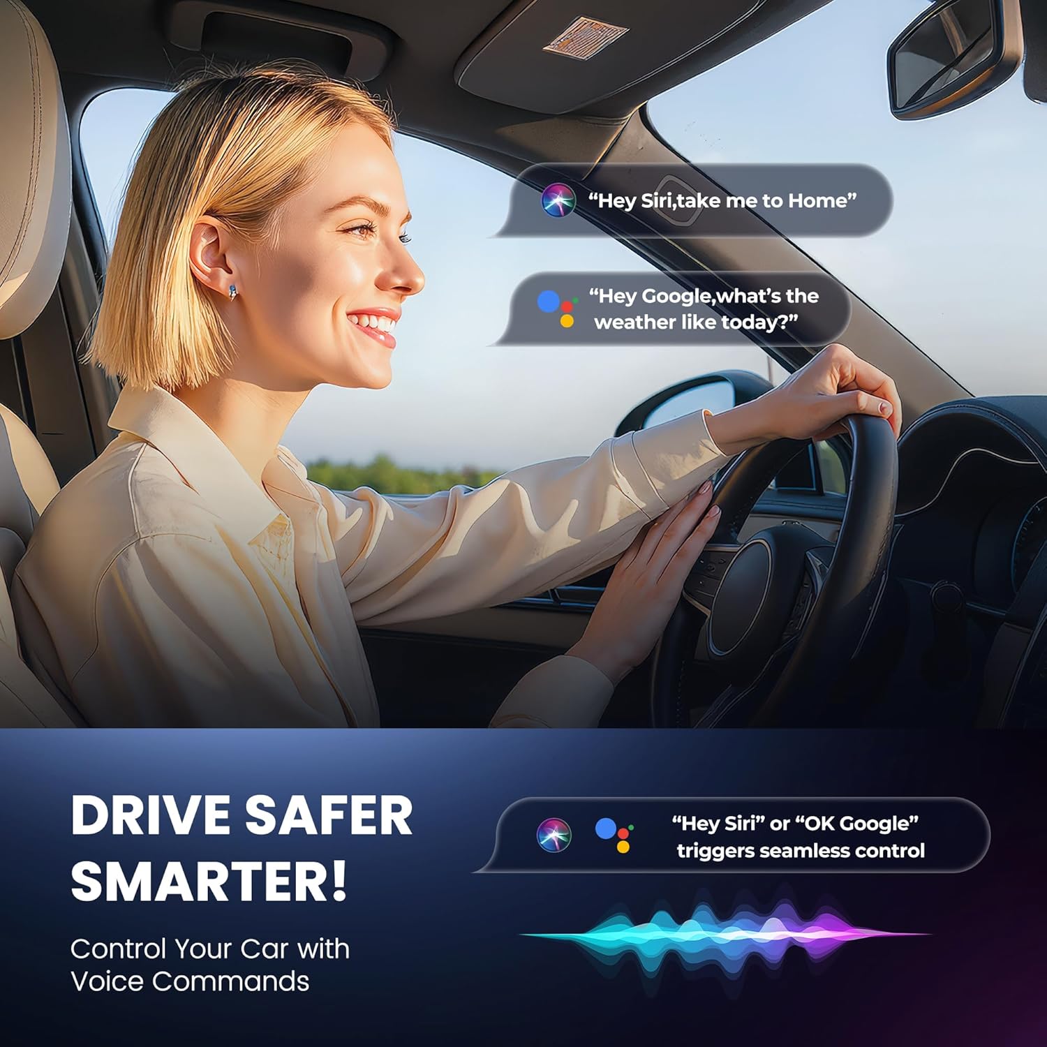 - Smart Voice Commands + Original Controls Preservation. Use Siri/Google Assistant hands-free while retaining steering wheel buttons, touchscreen, and factory knobs. No learning curve - designed for ​wireless carplay adapter for android and i Phone drivers who value safety.