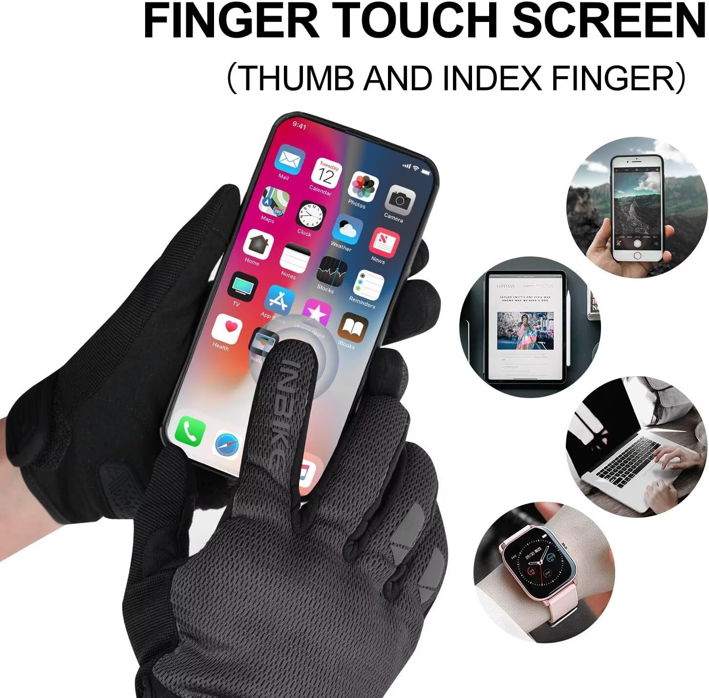 - ā[Touchscreen]: This riding gloves use touchscreen material on both the thumb and index finger tips, allowing you to use a touchscreen device without removing your gloves.