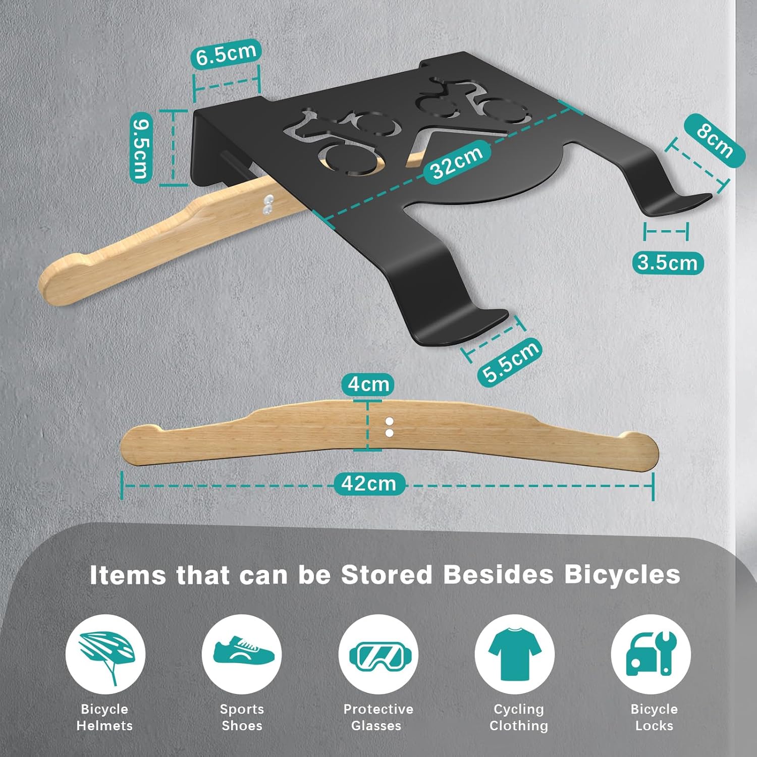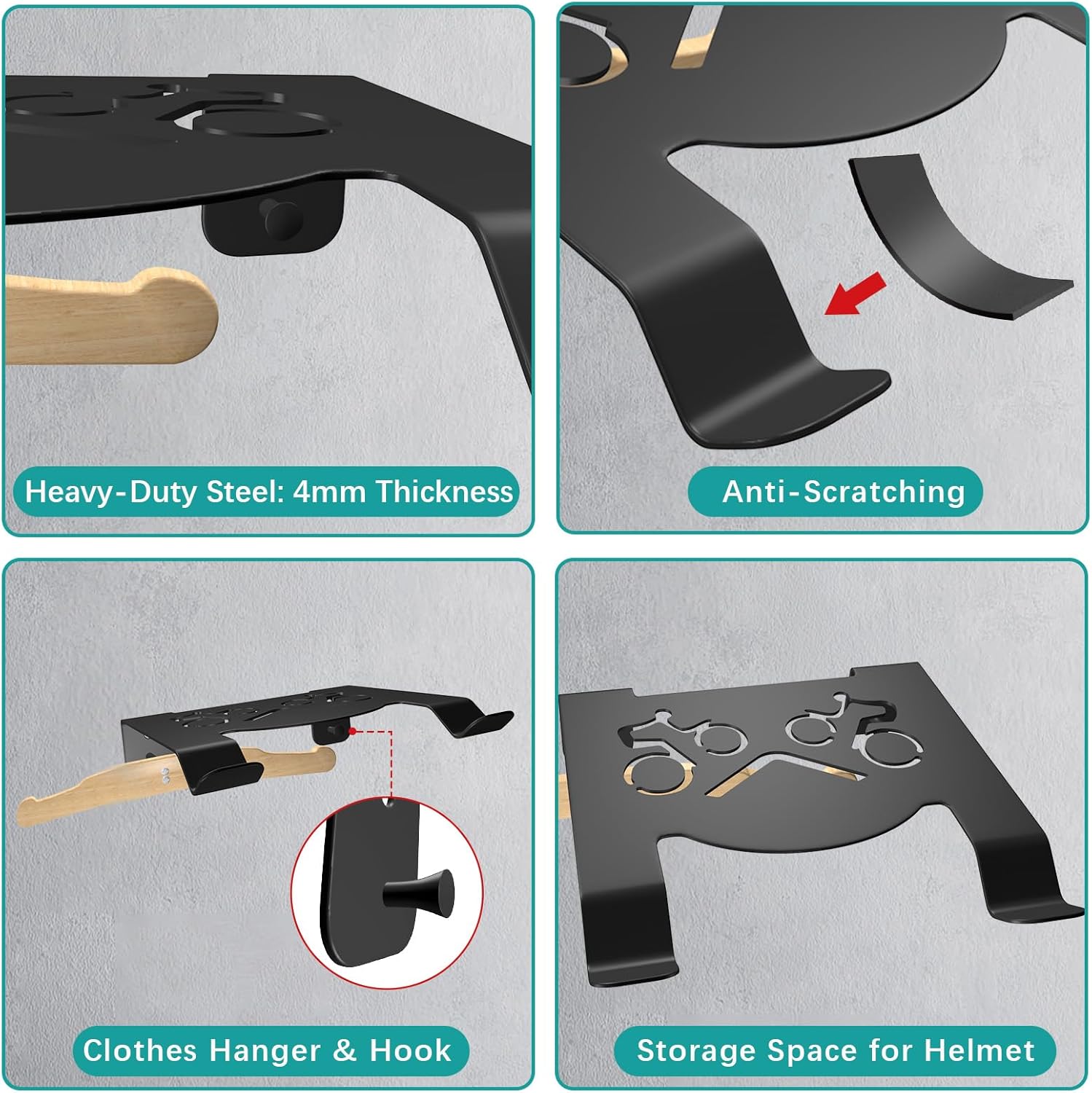 - Versatile Storage Solution: GHWMYD 2025 innovative wall mount bike stand is designed with a shelf and clothes hanger, providing a space for your helmet, keys, water bottle, riding clothes, and other essentials, adding a layer of convenience and organization to your biking routine.
