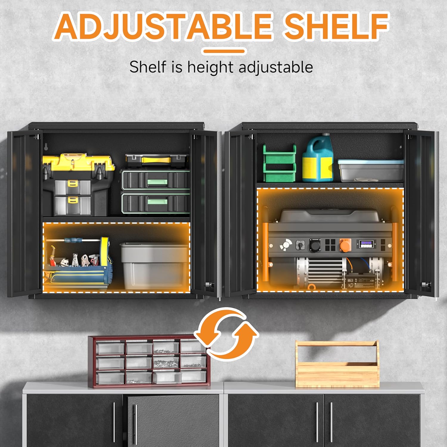 - 💎【Durable Metal Steel Construction】Crafted from high-quality metal steel, this wall cabinet offers exceptional strength and durability, making it a reliable storage solution for both industrial workshops and home garages.