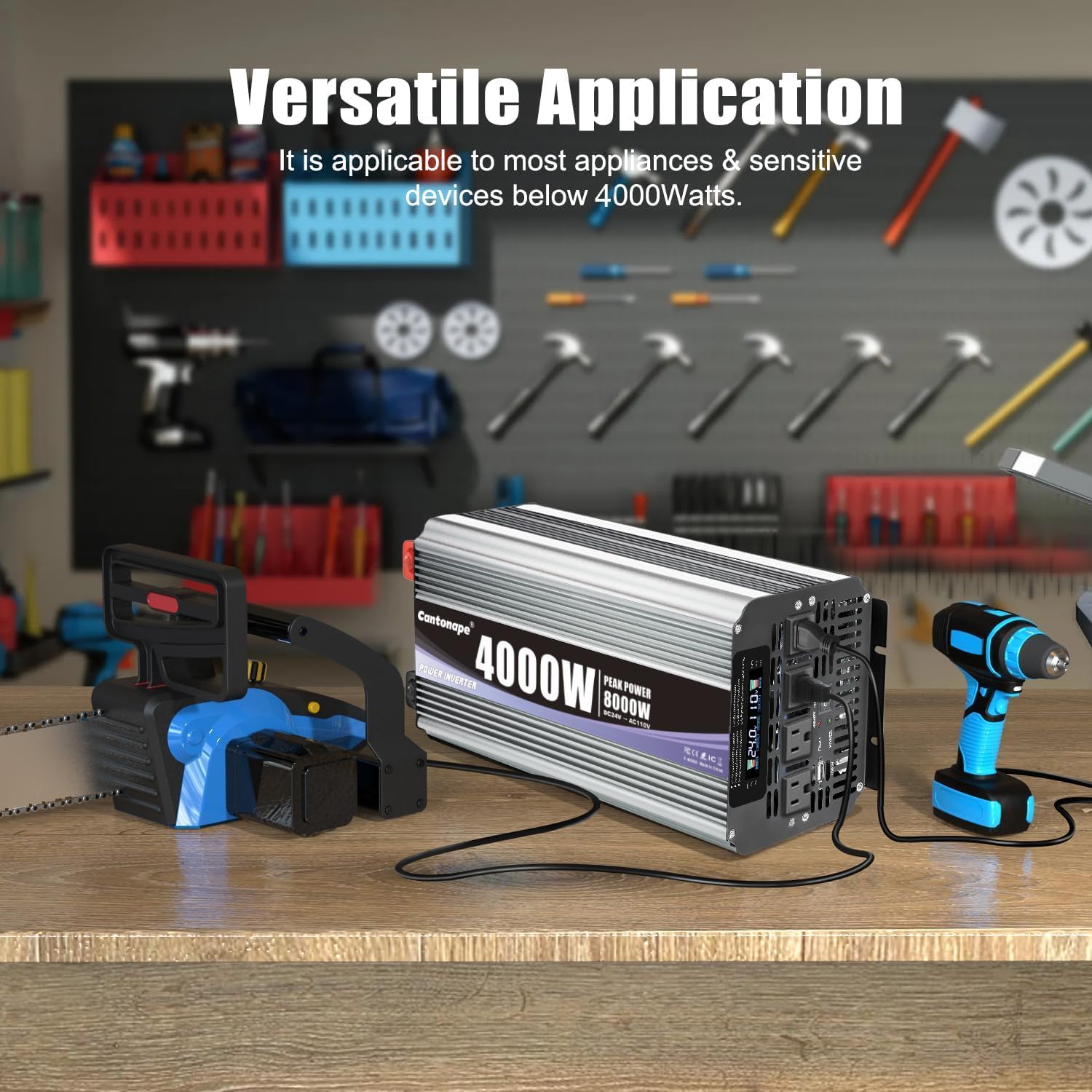 - Powerful Performance: Converts DC 24V to AC 110V/120V with a continuous output of 4000 watts, peaking at 8000W. Equipped with 4 AC output interfaces and a hard-wired connection option.