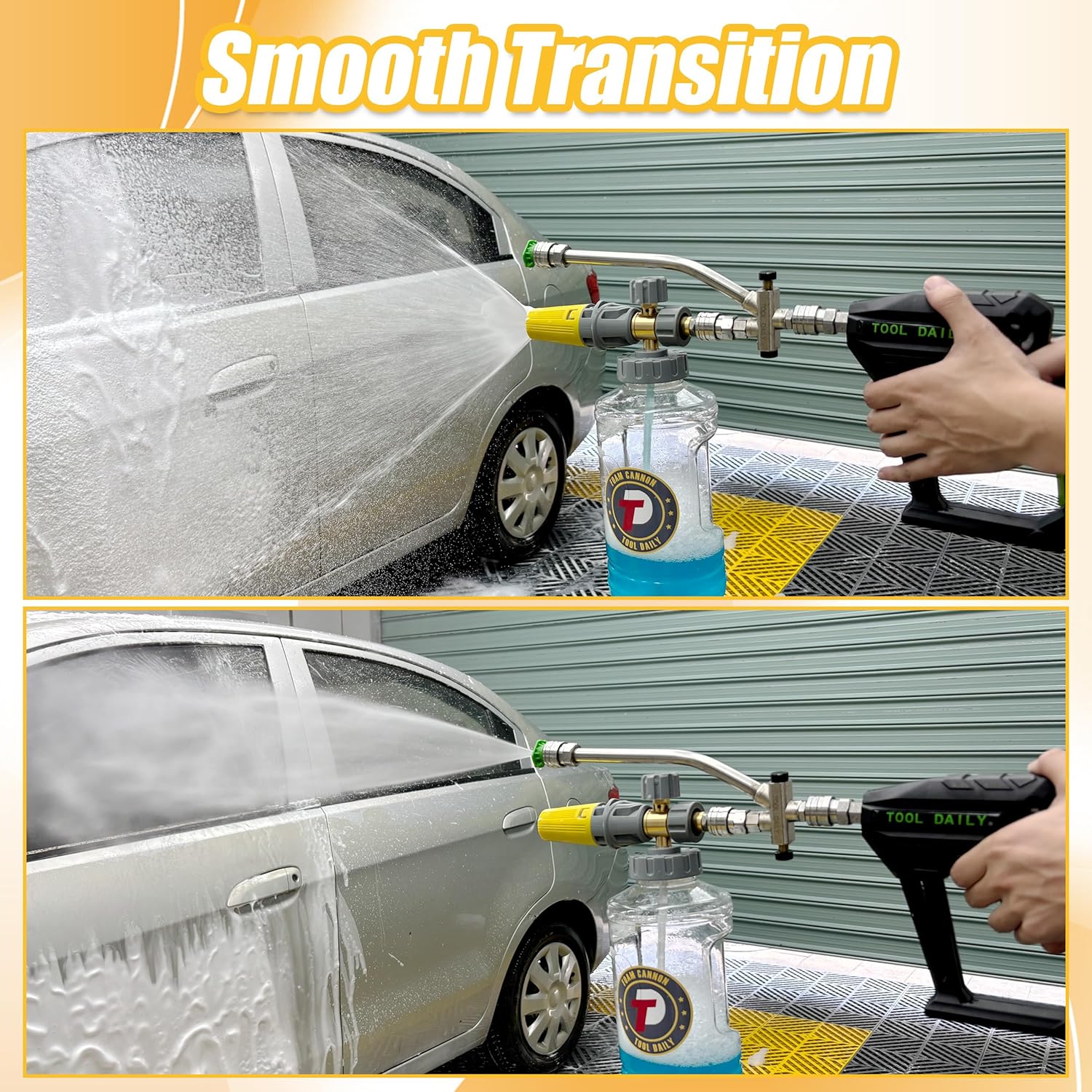 - VERSATILE APPLICATIONS: Crafted from premium materials, our power washer foam cannon with double-tip attachment is built for durability and long-term reliability. It's compatible with most pressure washers and accessories on the market, making it perfect for washing cars, motorcycles, roofs, driveways, floors, and siding, as well as cleaning walls and windows.