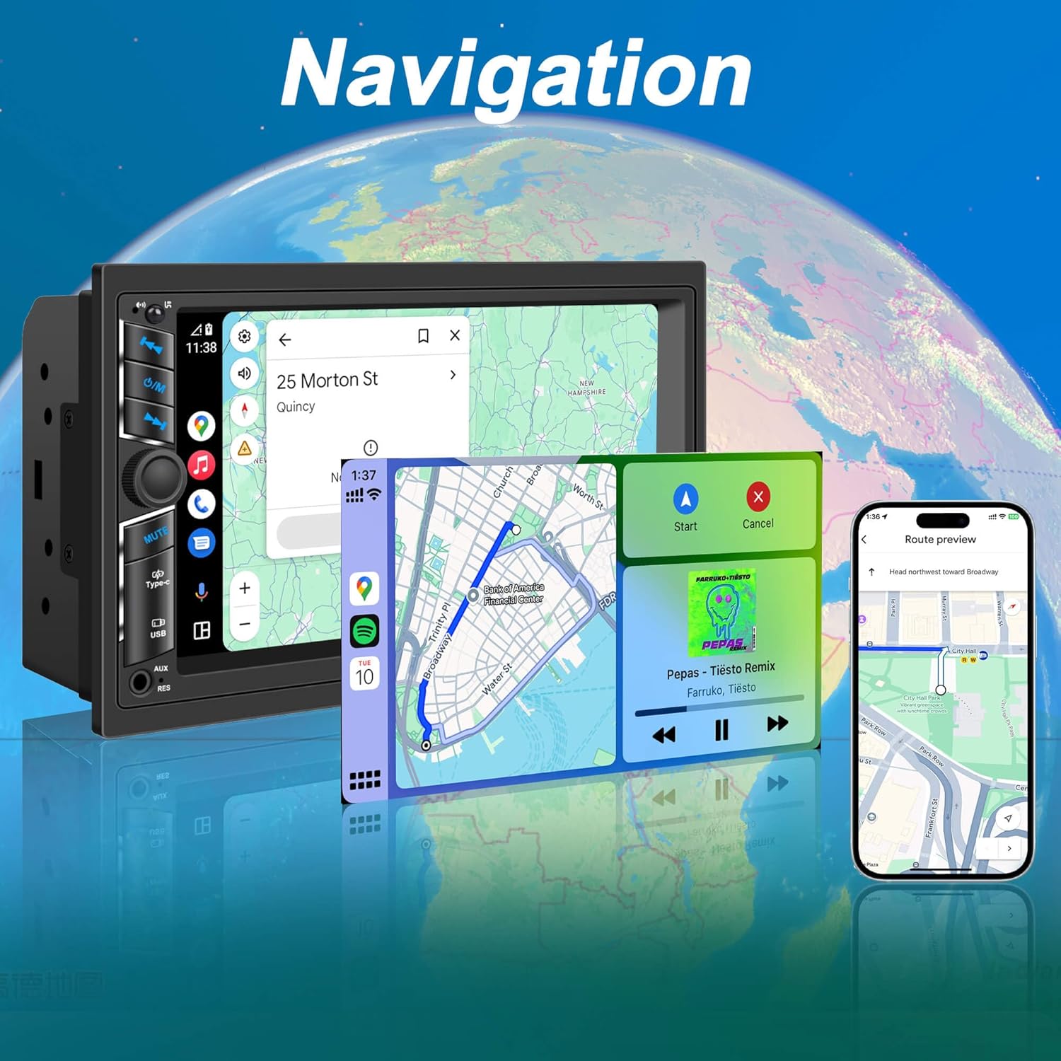 - 1. Wireless & Wired CarPlay / Android Auto - Double din car stereo offers seamless smartphone integration for hands-free calls, navigation, and music.