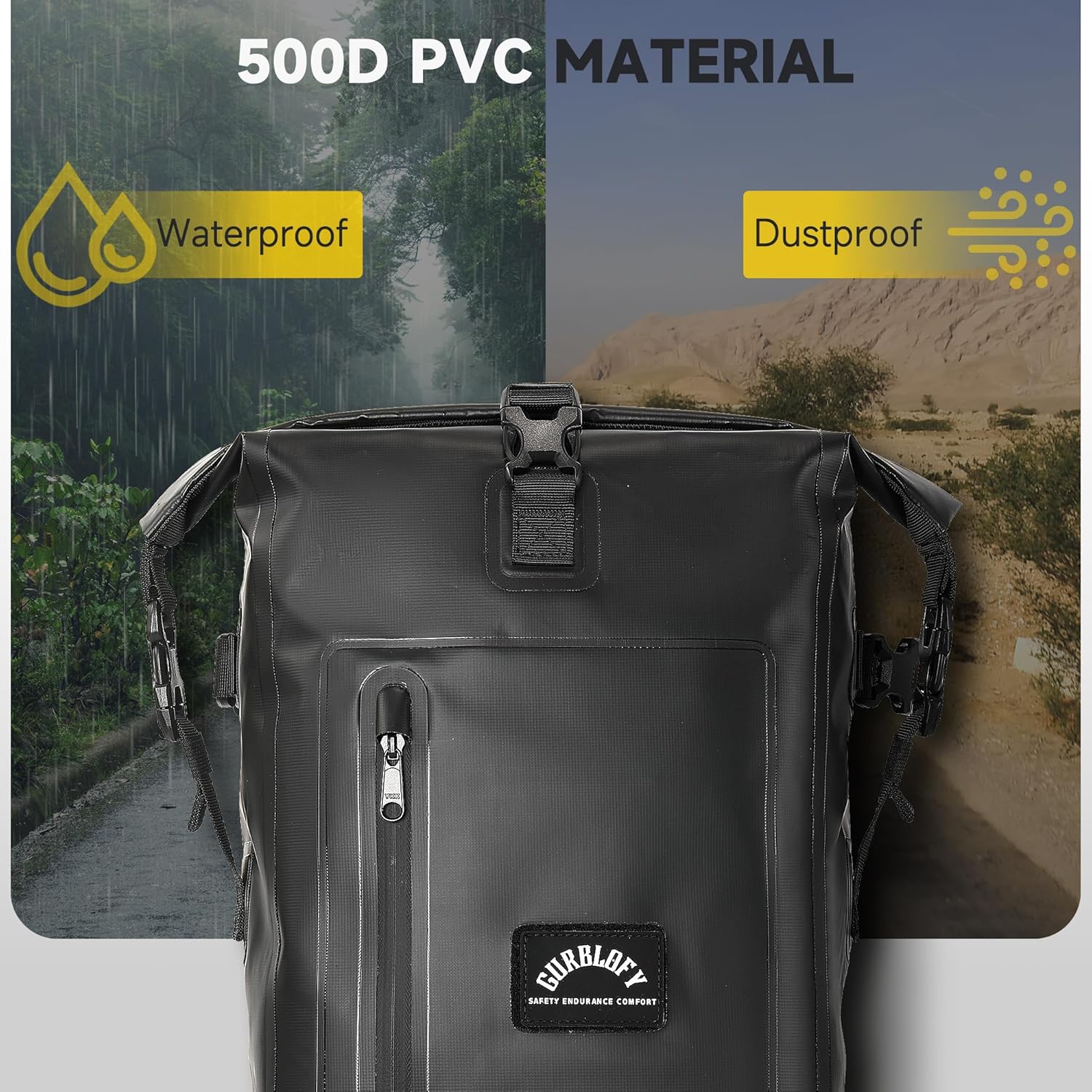 - Advanced Protection & Comfort. Constructed with 500D PVC material, the Gurblofy motorcycle saddle bag delivers complete waterproof and dustproof performance with easy-wipe cleaning - ideal for urban commutes and touring alike. The proprietary back panel design features Gurblofy's unique ventilation structure, combining breathability with weight distribution for exceptional riding comfort.
