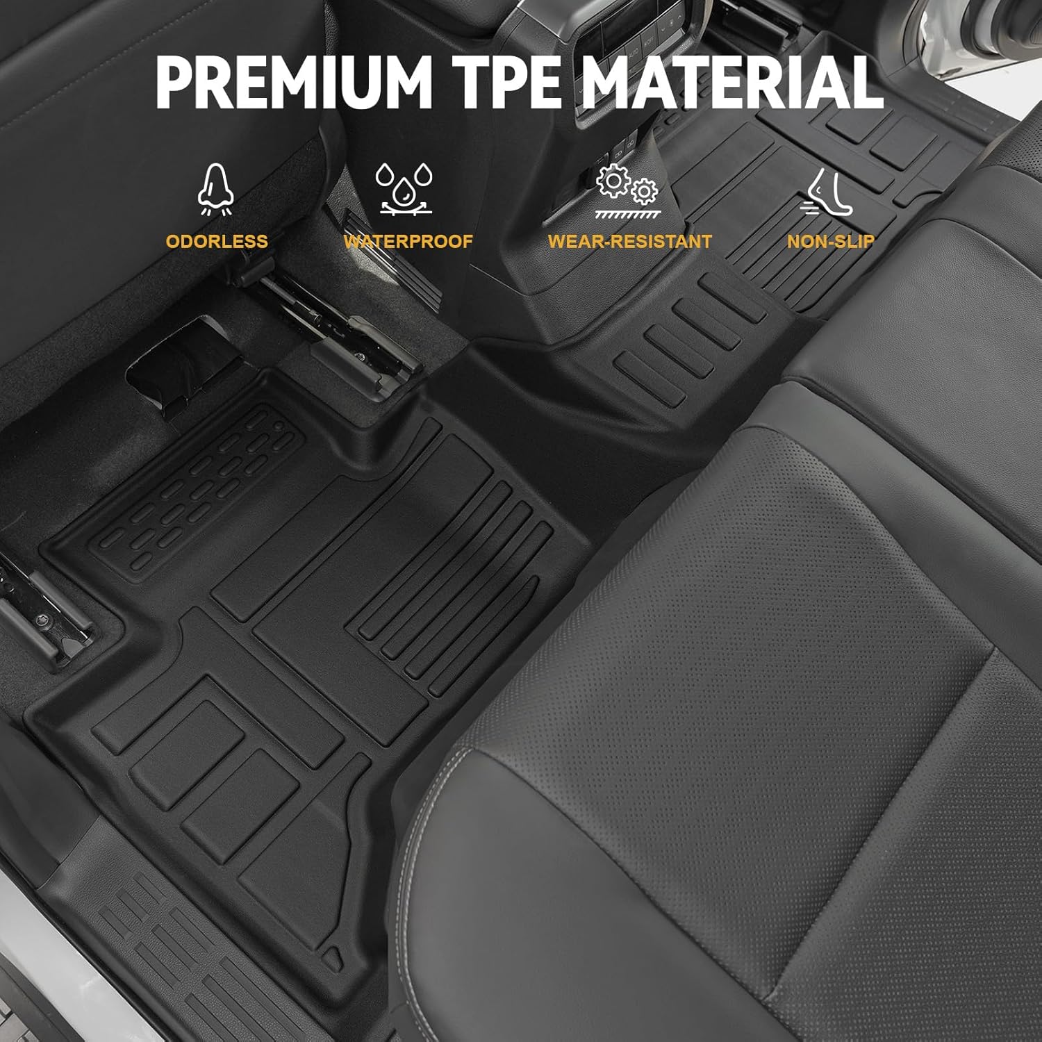 - All-weather TPE Material: 100% odorless, BPA Free and providing complete safety for your family while minimizing environmental impact. These flexible car mats full set feature water-resistant performance backed by marine-grade durability that withstands heavy daily use