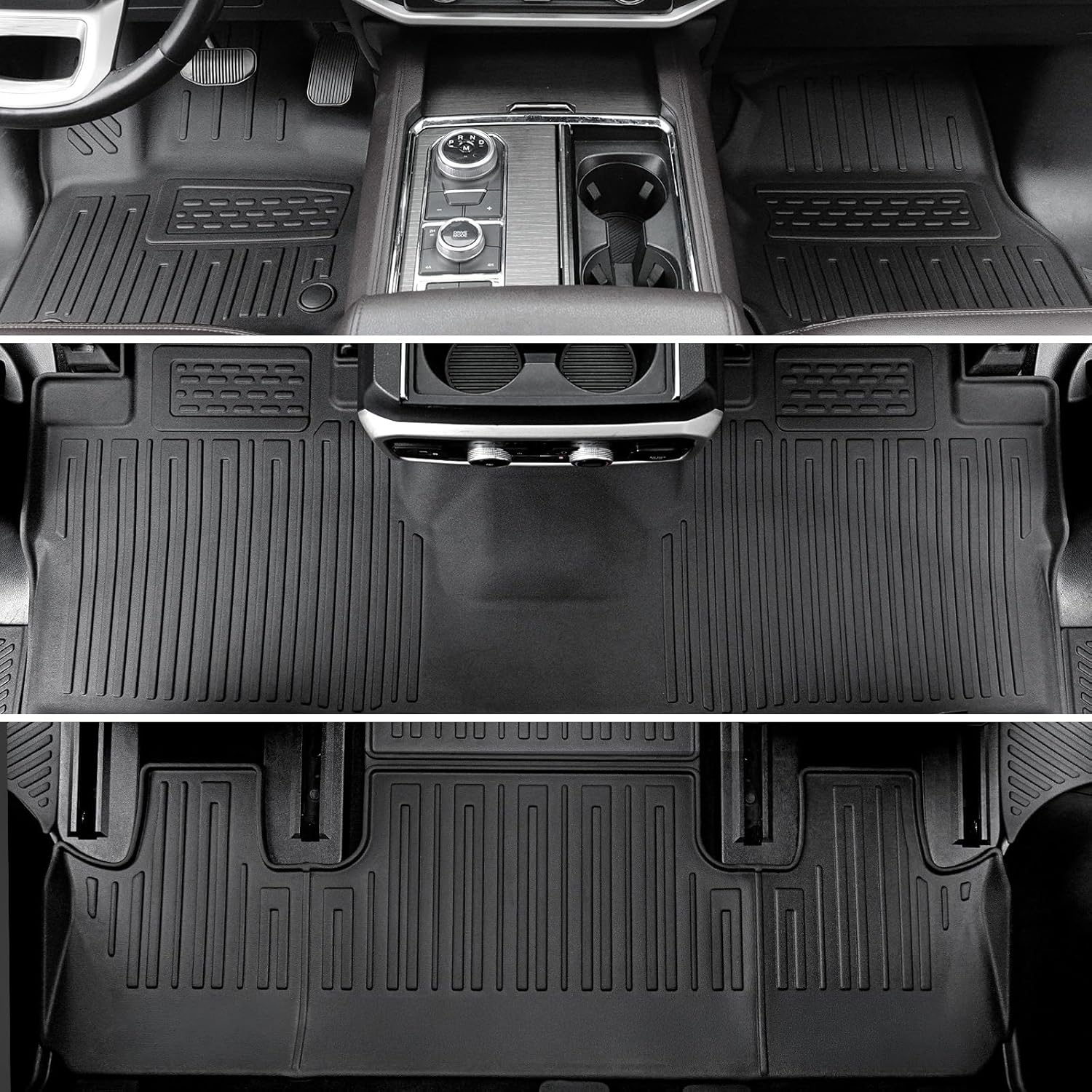 - Custom Fitment: Precisely designed with 3D laser scanning technology for 2018-2024 Ford Expedition/Lincoln Navigator 7 passenger seating(2nd row captain's Chairs). Not fit Max or L Model. Includes floor mats, cargo liner, 3rd row seat back protectors and 4PCS door sill guards – 30% more components than standard sets