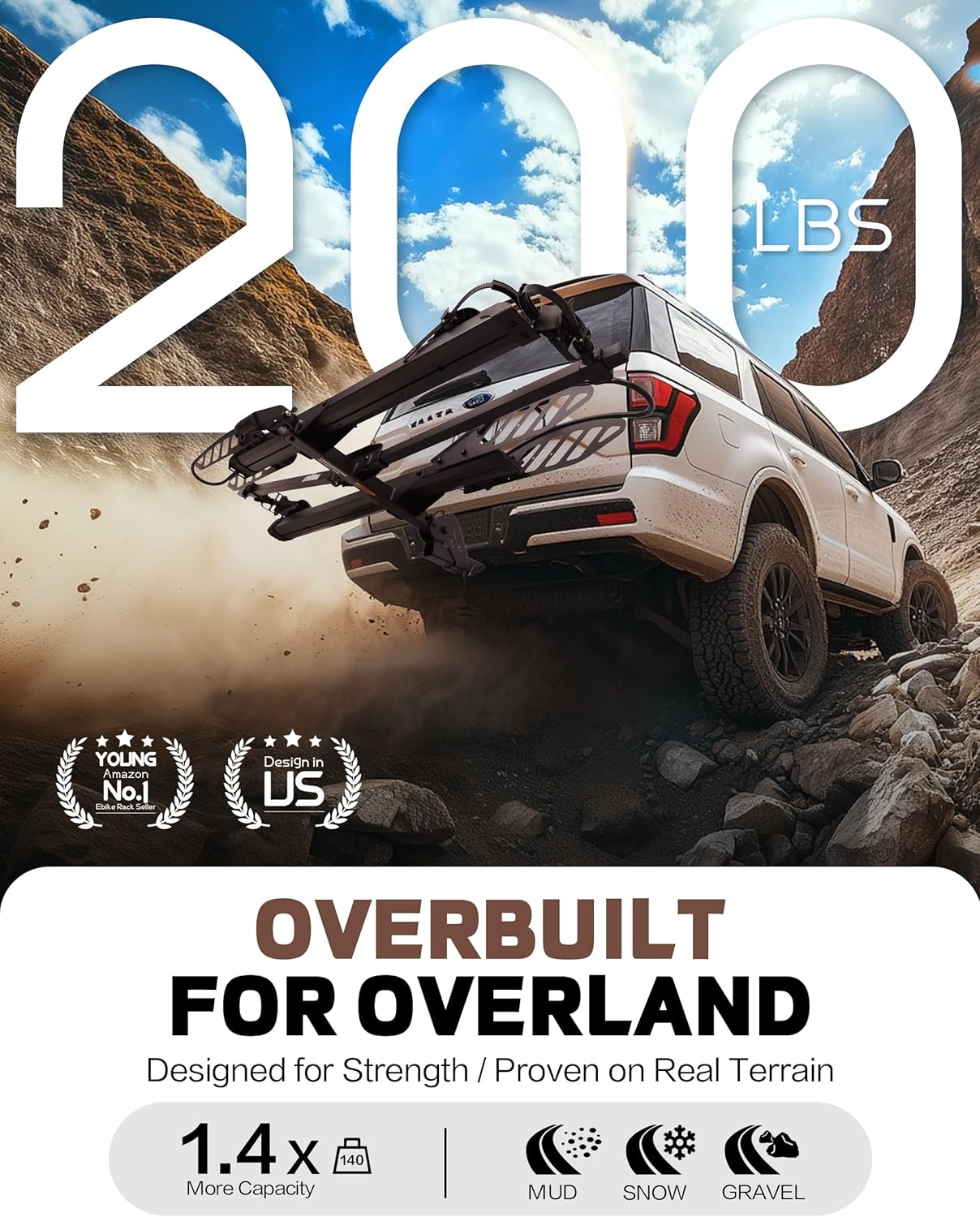 - Capacity: The ebike rack with a ramp, accommodating up to 200lbs in total, or 100lbs per ebike or bike. It fits any vehicle equipped with a 2-inch receiver and accommodating ebikes up to 5'' wide and with a wheelbase up to 50''.