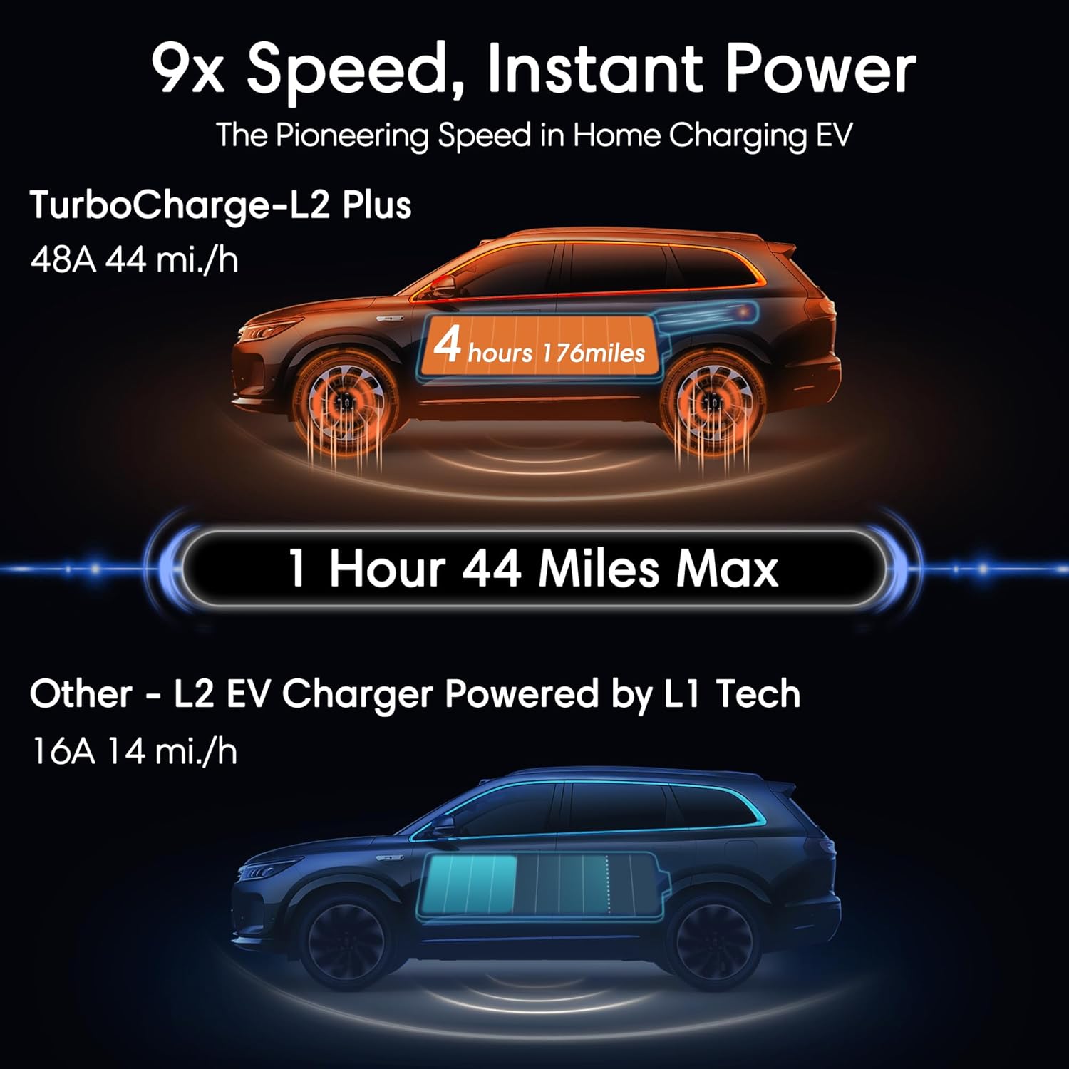 Level 2 EV Charger 48 Amp - Smart EV Charger for Home Level 2 Hardwired, 240V Electric Vehicle Charging Stations 11.5kW, 25ft Cord, Outdoor/Indoor
