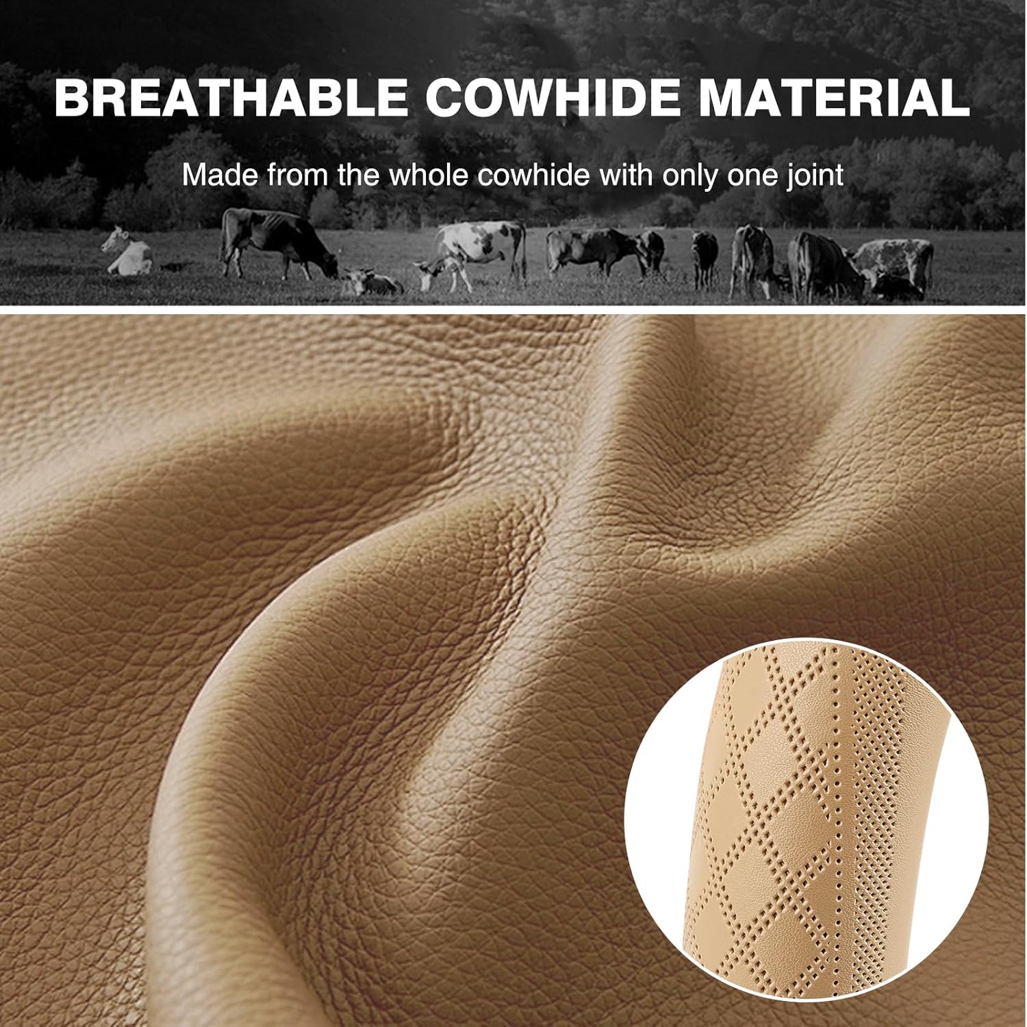 - 【Luxurious Cowhide Material】:Genuine cowhide material features sweat absorption, breathable,cold and heat resistance. It is sewn from one whole piece of material without any splicing, with only one joint.Square block design.