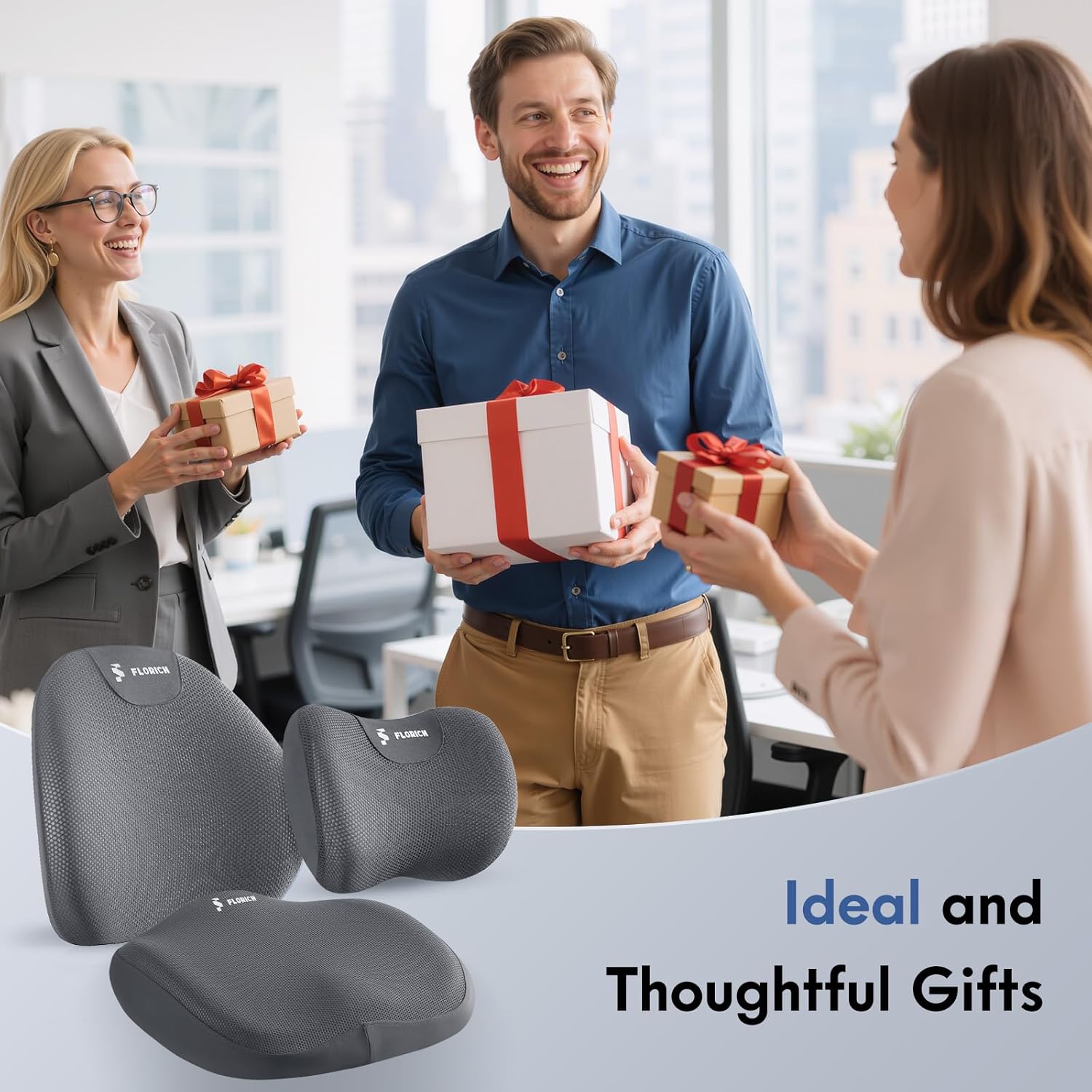 - Enjoy Comfort in Multiple Scenarios: Florich cushion, lumbar support, and headrest set is suitable for people of all ages and lifestyles, not only for office chairs, home chairs, car seats, gaming chairs, airplane seats, and wheelchairs, but also for office workers, drivers, teachers, students, and those who enjoy reading and gaming. Whether it's Christmas, New Year's, Father's Day, Mother's Day, weddings, or graduations, this pillow set makes a memorable and healthy gift.