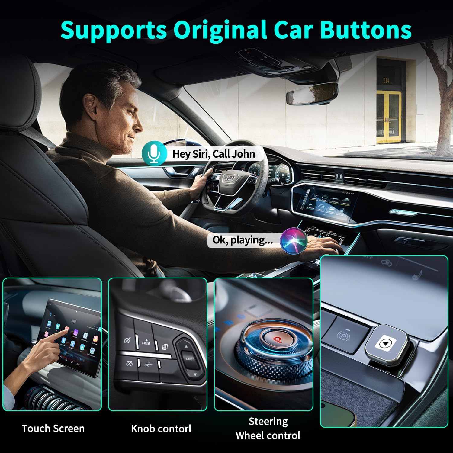 - **Lag-Free & Smart Convenient Features** β Advanced chipset reduces latency (under 0.5s delay for music/maps),5GHz WiFi ensures HD audio (no static or dropouts during calls),even on bumpy roads,the Wireless CarPlay stable connection,Supports Siri voice control for hands-free calls, messages and navigation