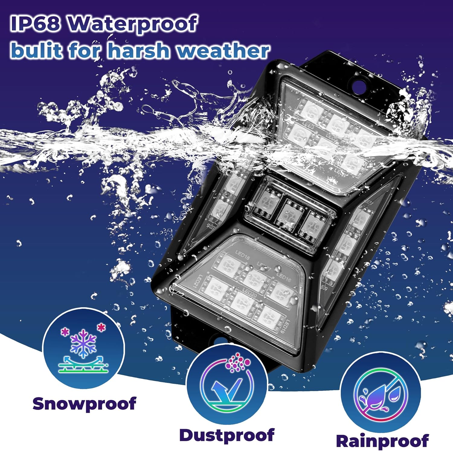 - ăChase Mode & Brake AlertsăOur rock lights truck offers 16 million colors and a trendy 'chase' mode. Manage brightness and access 213 pre - set strobe patterns via an intuitive app.Brake alert shines red for safety