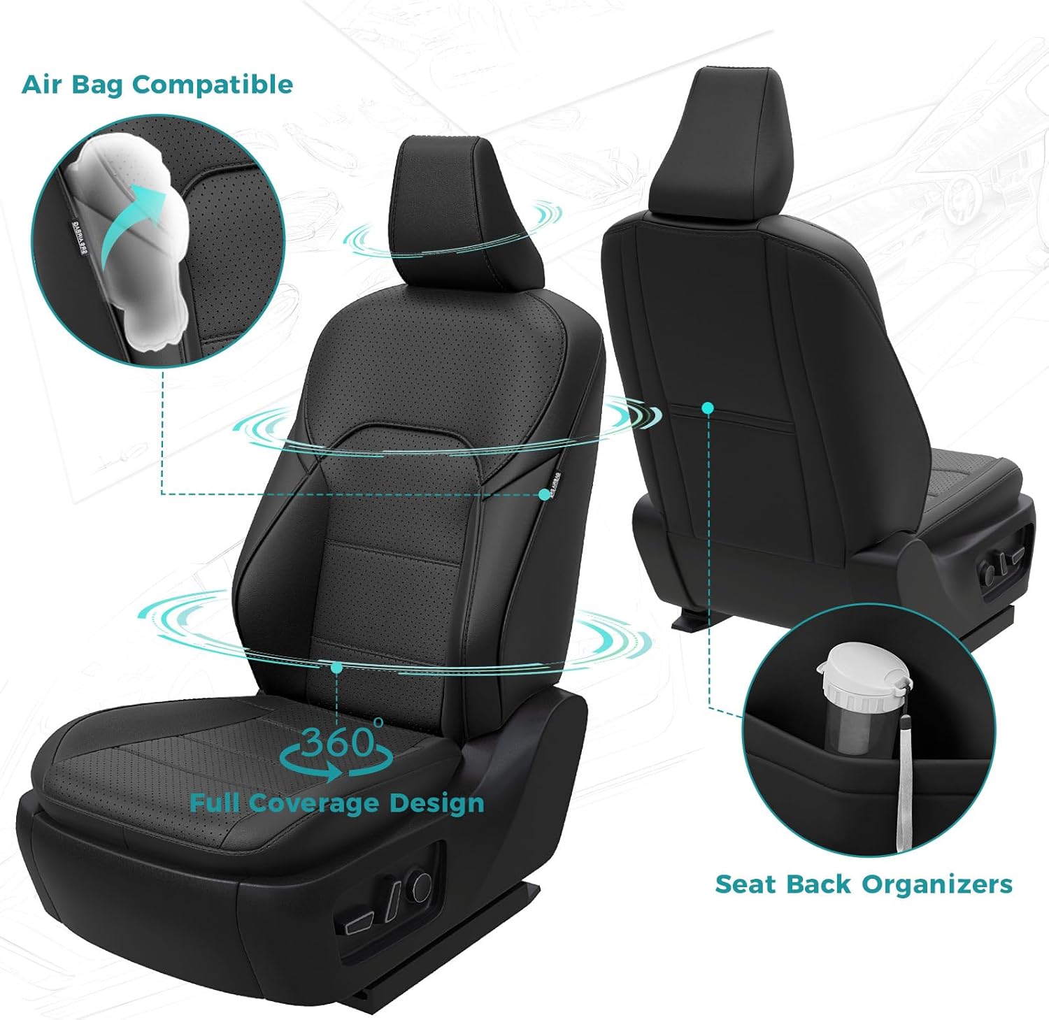 - ăMaintain Existing Functionalityă: Tailored to fit snugly all details of car seat covers for Toyota camry and ensure the full function, not affecting at all the use of airbag, armrests, safety belt, child seats and seat adjustments. full wrap front car seat covers come with seat back organizer for improved user convenience.