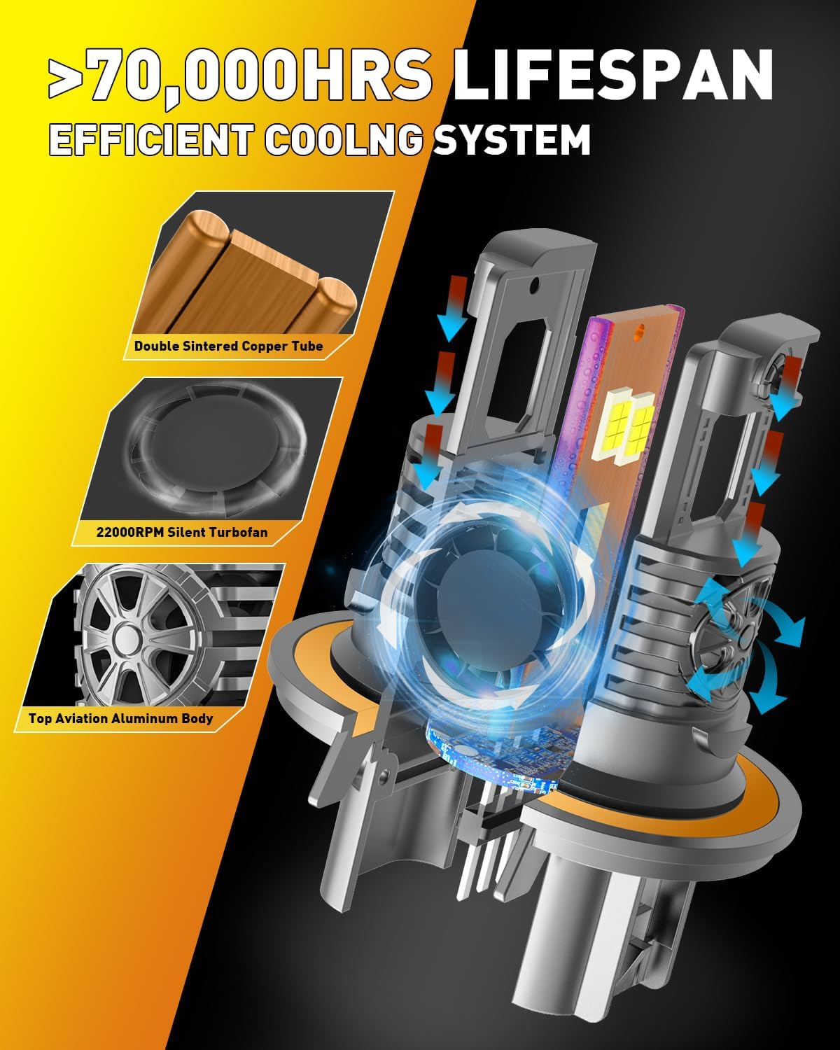 - 【1000% BREAKTHROUGH BRIGHTNESS】Upgrade your driving experience with our high-power light bulbs, featuring 12 high-power chips per light and an impressive 60,000LM brightness per set. With the latest Z10 technology, these lights provide reliable and efficient illumination for optimal nighttime driving.