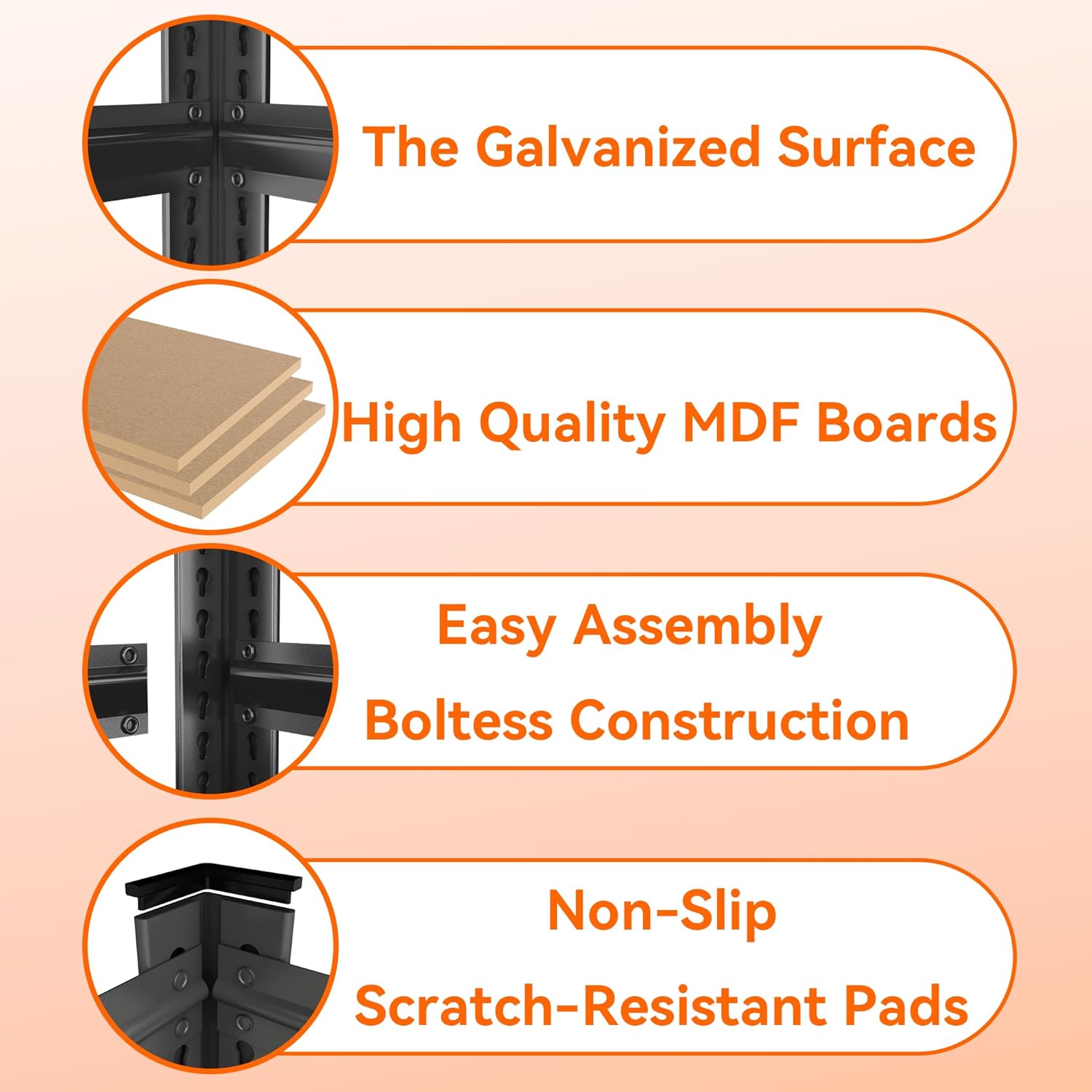 - ăVersatile Application For Any Spaceă This multifunctional shelving unit is perfect for garages, basements, workshops, and more. Its industrial black design seamlessly integrates into various settings, providing an ideal storage solution that enhances both functionality and aesthetics in your home or workspace.