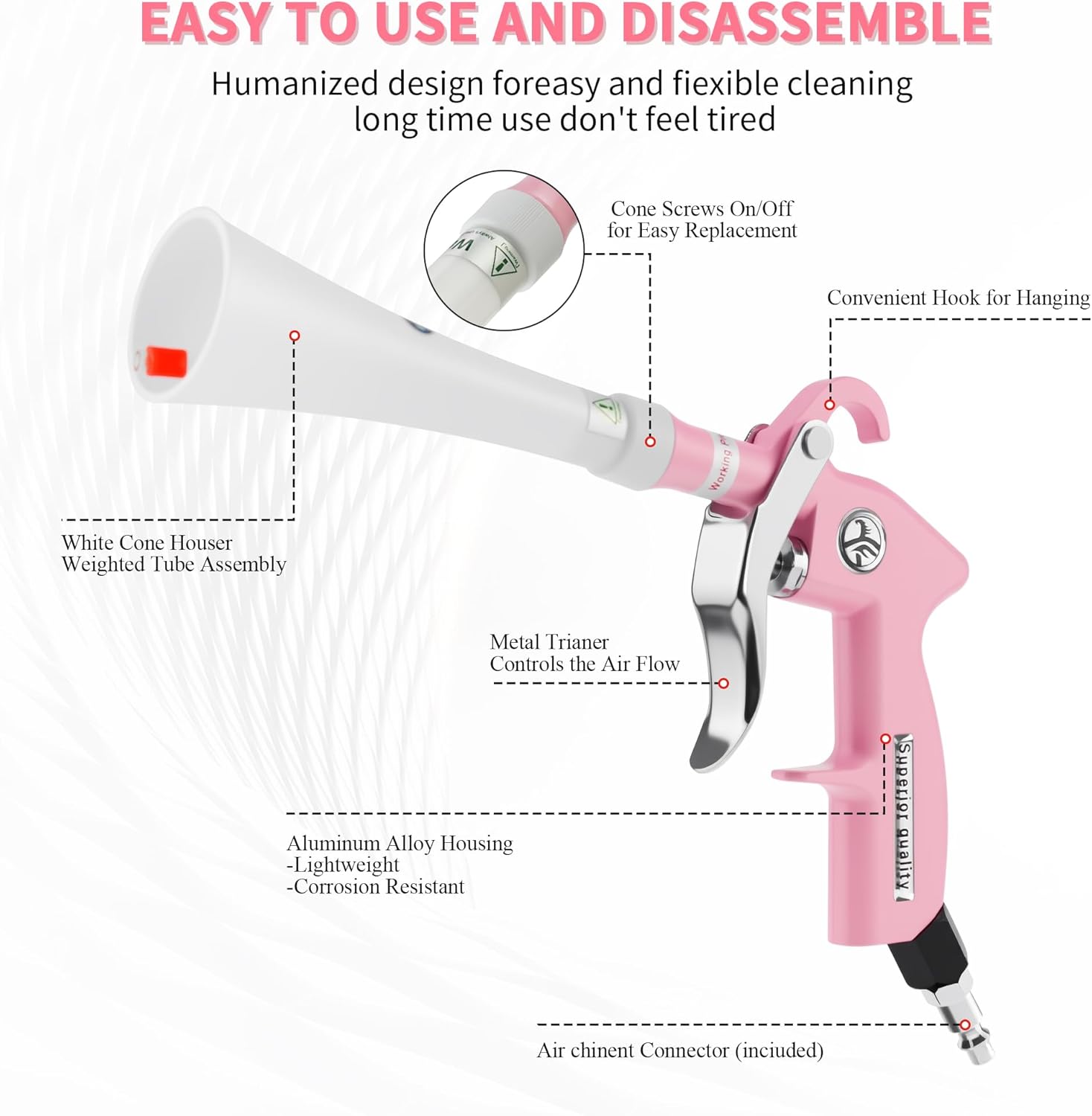 - Premium Quality: Our Car Dry Cleaning Gun is made with high-quality aluminum body, ensuring durability and corrosion resistance for long-lasting use.Moreover, it features an ergonomic grip for comfortable handling, and the trigger is long enough for easy control.