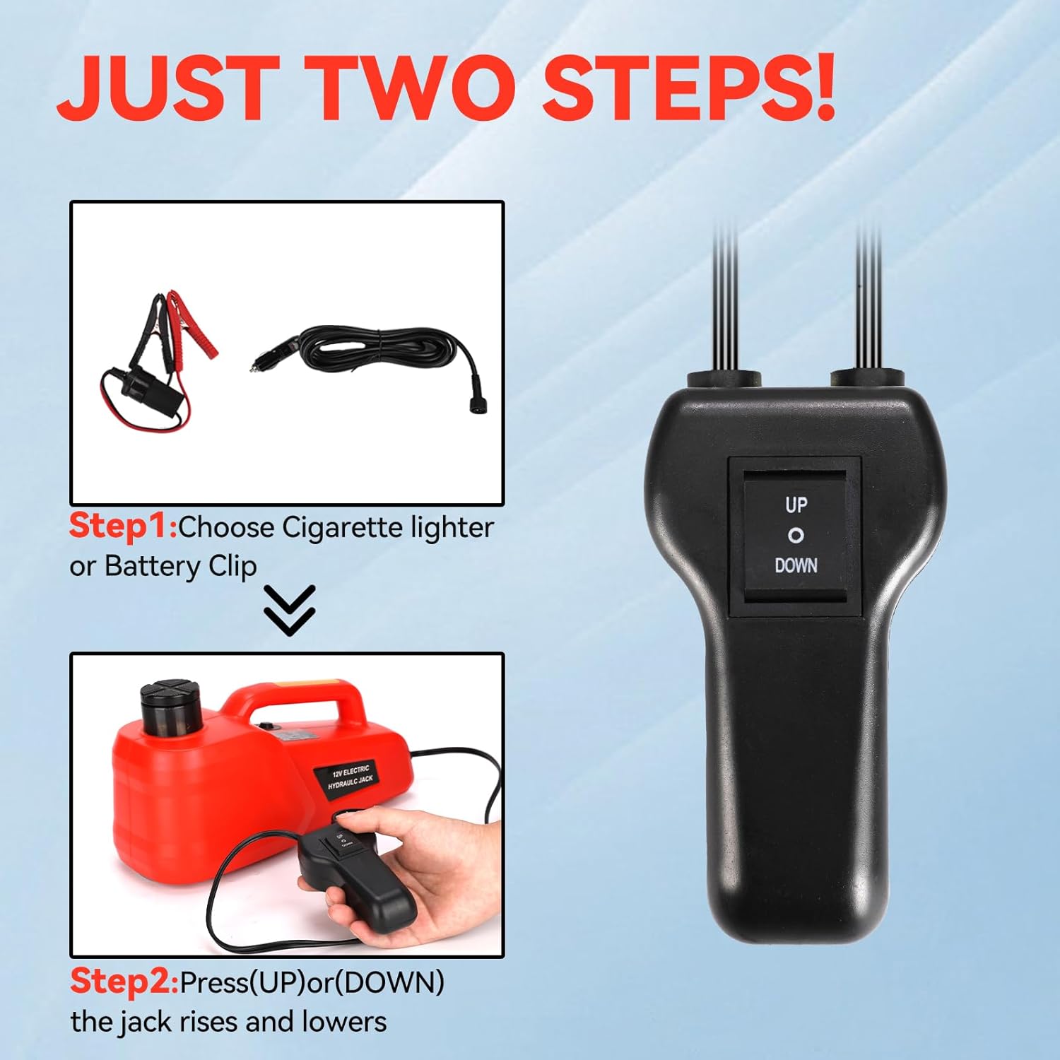 - Simple Use: The 12V jack comes with a remote control, which removes the need to operate under the vehicle. With just the press of a button, it can effortlessly lift your vehicle