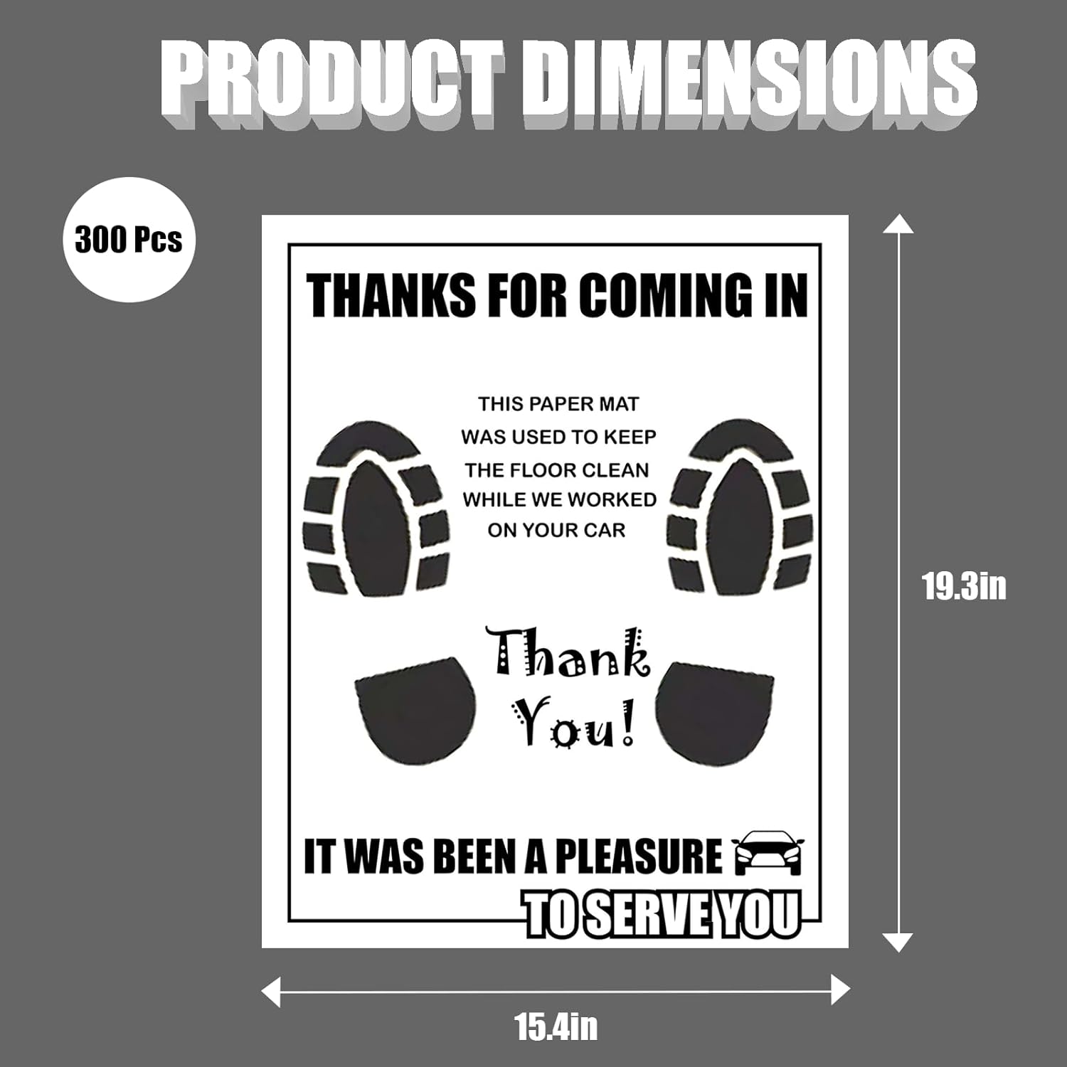 300 Pcs Car Paper Floor Mats, Disposable Automotive Floor Mats for Car Detailing with Footprint Words, White Car Foot Pads Protective Papers (19.3" x 15.4")