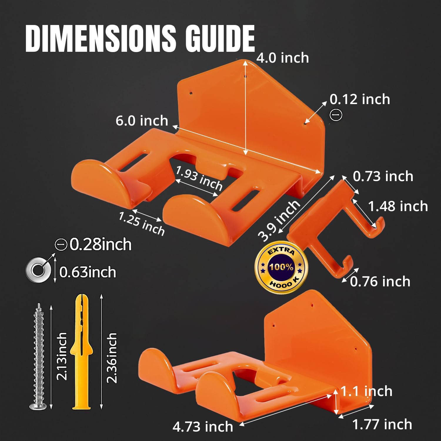 - [ PREMIUM QUALITY ] : Crafted from thick gauge steel for superior strength, this garage organizer is built to last. The orange rubber coating protects against rust, chipping, and cracking—ideal for lawn equipment storage and power tool hanger needs. Smooth edges prevent damage to gear, making it perfect as garage hooks heavy duty, leaf blower hanger, or weed wacker holder for your garage storage system.